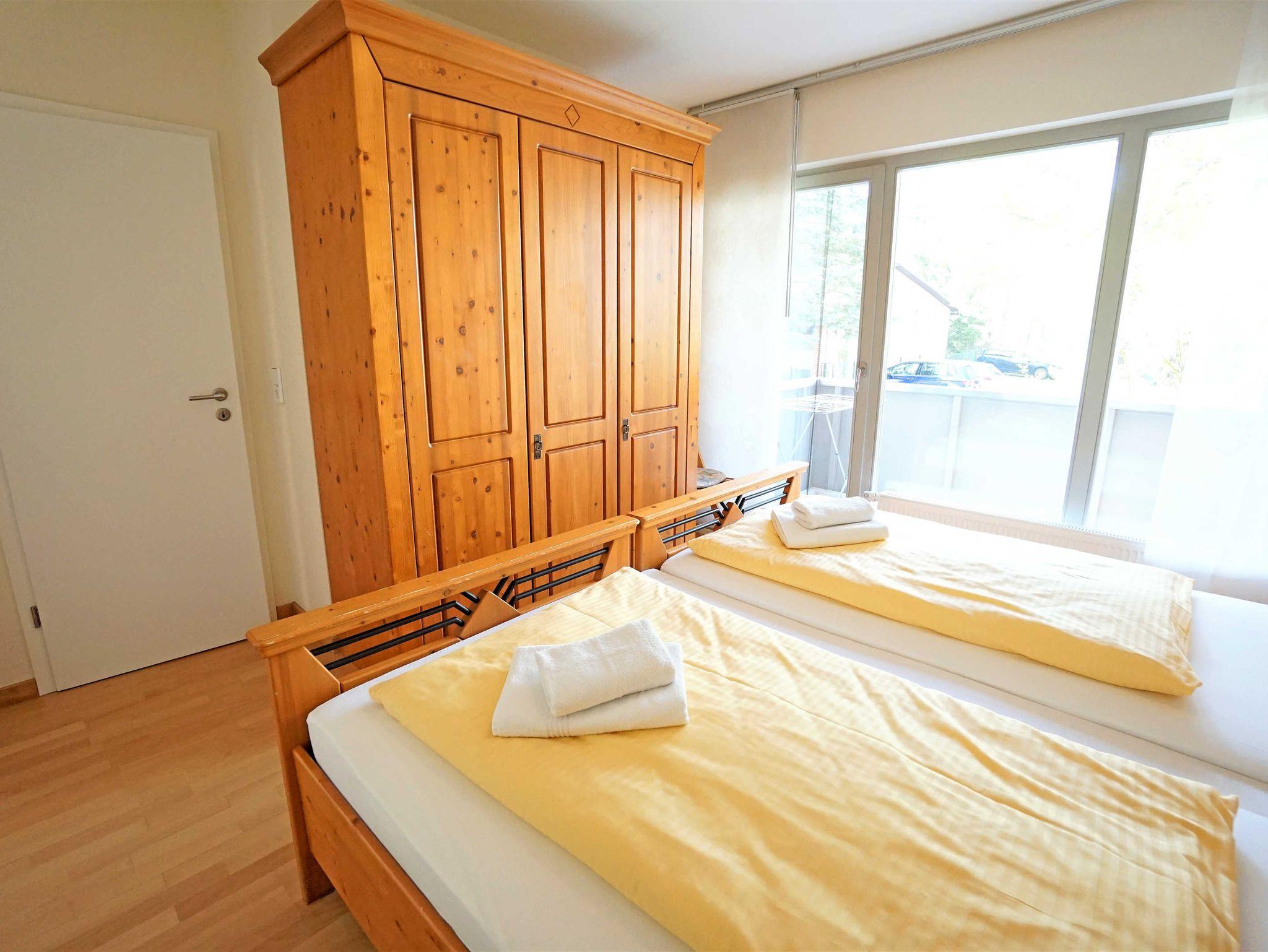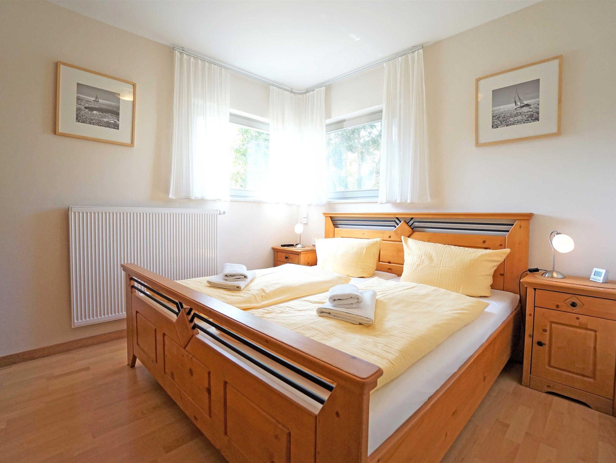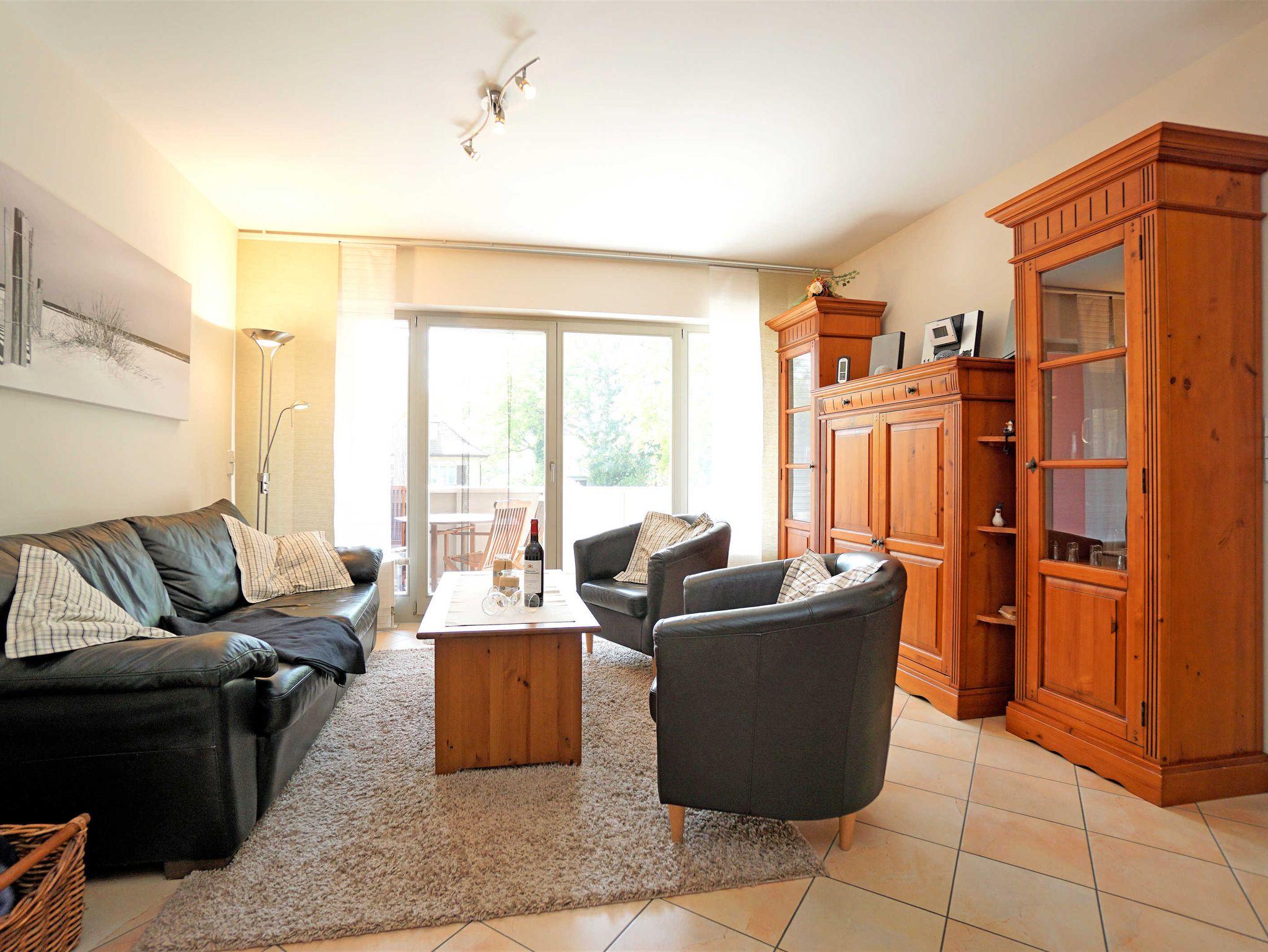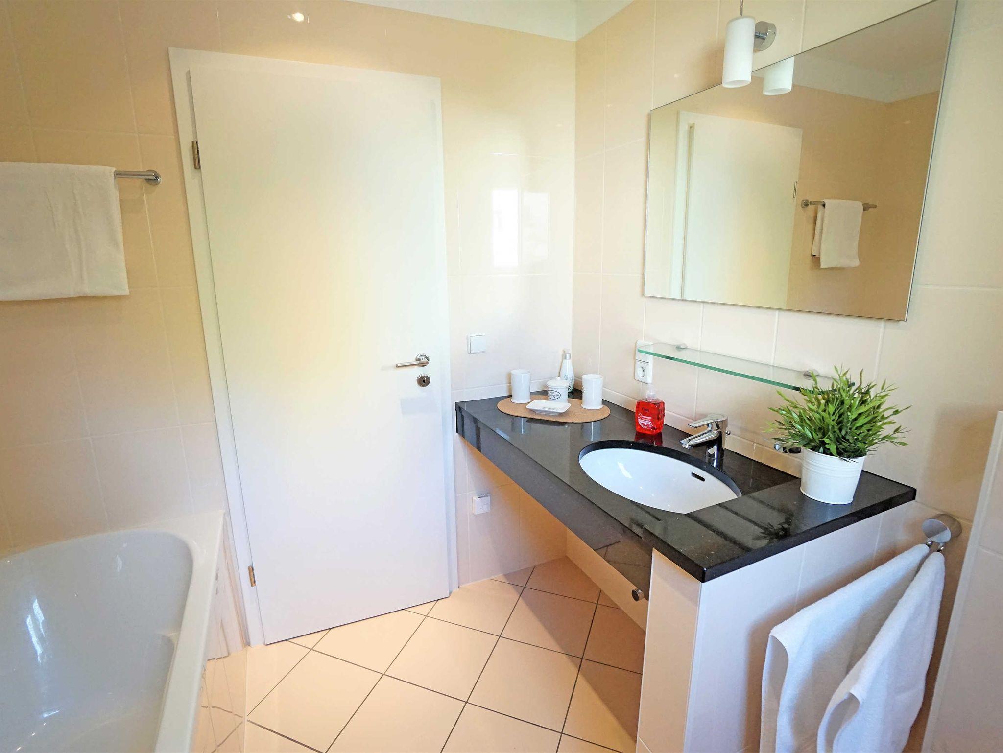 Die hochwertig eingerichtete 3-Zimmer Ferienwohnung (65m²) befindet sich im Hochparterre des Hauses Villa Marlen. Das geräumige Wohnzimmer mit offener, vollausgestatteter Küchenzeile, großem Esstisch und gemütlicher Couch lässt keine Wünsche offen. Vom Wohnzimmer aus erreicht man den großen Balkon mit einer Treppe zum Grundstück. Zwei Schlafzimmer mit jeweils einem großen Doppelbett (180x200) und einem großen Kleiderschrank bieten genug Platz für bis zu 4 Personen. Eines der beiden Schlafzimmer ist mit einem Flachbildfernseher (im Schrank) ausgestattet und das zweite Schlafzimmer hat einen eigenen Balkon. Unter anderem verfügt diese Ferienwohnung über ein Duschbad und einem weiteren Badezimmer mit Badewanne.