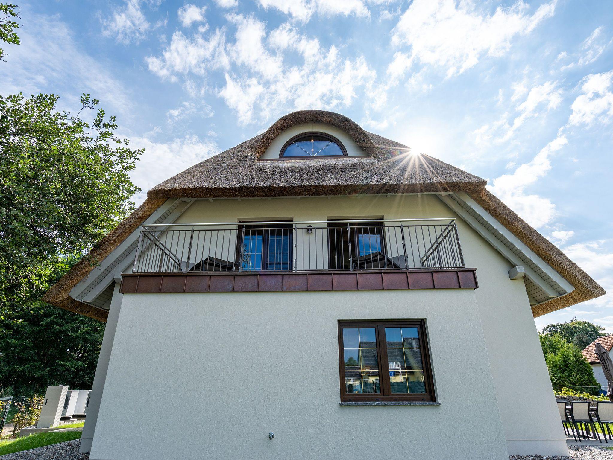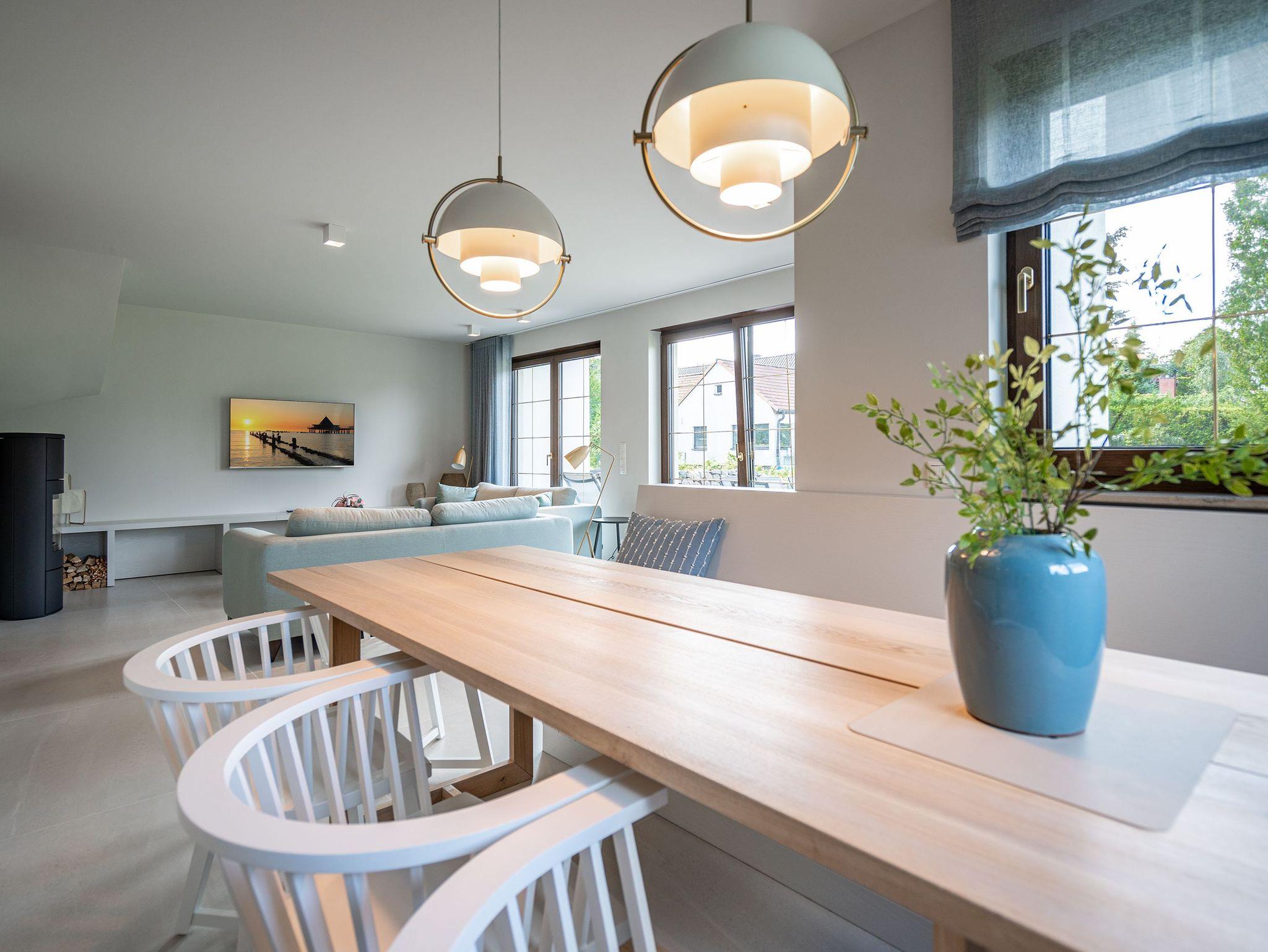 Willkommen im Ferienhaus Reet [&] Meer N°1 in der Triftstraße im Seebad Heringsdorf. Diese charmante Doppelhaushälfte mit 129 Quadratmetern erstreckt sich über drei Etagen und bietet ausreichend Platz für bis zu 8 Personen. Im Erdgeschoss erwartet Sie eine offene Wohnküche mit einem großzügigen Essplatz und einer gemütlichen Sitzgruppe. Hier können Sie gemeinsame Mahlzeiten genießen, entspannen und sich unterhalten. Ein Flat-TV und ein Kaminofen sorgen für zusätzlichen Komfort und Gemütlichkeit. Vom Erdgeschoss gelangen Sie auf die Terrasse, die mit Gartenmöbeln ausgestattet ist und Ihnen einen schönen Rückzugsort im Freien bietet. Das Erdgeschoss verfügt außerdem über ein Badezimmer mit Dusche, WC und einer herrlichen Finnischen Sauna, in der Sie nach einem ereignisreichen Tag entspannen können. Ein Waschtrockner steht Ihnen ebenfalls zur Verfügung. Im ersten Obergeschoss erwarten Sie drei Schlafzimmer mit jeweils einem Boxspringdoppelbett (1,80m x 2,00m), einem Einbaukleiderschrank und in zwei der Räume einen Flat-TV. Hier können Sie sich in gemütlicher Atmosphäre ausruhen und erholsame Nächte verbringen. Zusätzlich gibt es ein Badezimmer mit Dusche, Waschtisch und WC. Von zwei der Schlafzimmer haben Sie Zugang zum Balkon mit Sonnenliege, wo Sie die frische Meeresluft und den Ausblick auf die Umgebung genießen können. Im Dachgeschoss befindet sich ein weiteres Schlafzimmer (aktuell noch ohne Verdunklungsmöglichkeit) mit einem Boxspringdoppelbett (1,60m x 2,00m), Flat-TV und einer Kommode. Hier finden Sie ebenfalls ein kleines Badezimmer mit Waschtisch und WC vor. Das Dachgeschoss bietet somit eine zusätzliche Rückzugsmöglichkeit. Für Ihre Fahrzeuge steht ein Carport mit zwei Stellplätzen (mit E-Ladestation, kostenpflichtig) zur Verfügung, damit Sie bequem an- und abreisen können. Kostenfreies WLAN ist selbstverständlich ebenfalls vorhanden, sodass Sie mit Ihren Lieben in Verbindung bleiben können. Das Ferienhaus Reet [&] Meer N°1 in der Triftstraße 10 verspricht einen unvergesslichen Aufenthalt in Heringsdorf. Genießen Sie die Annehmlichkeiten des Hauses und erleben Sie erholsame Tage an der Ostsee.