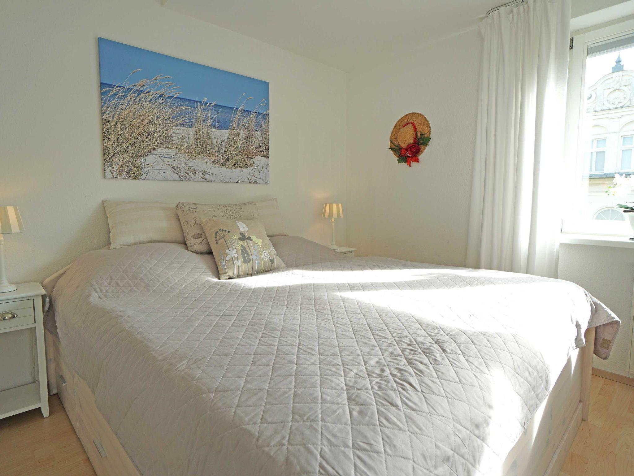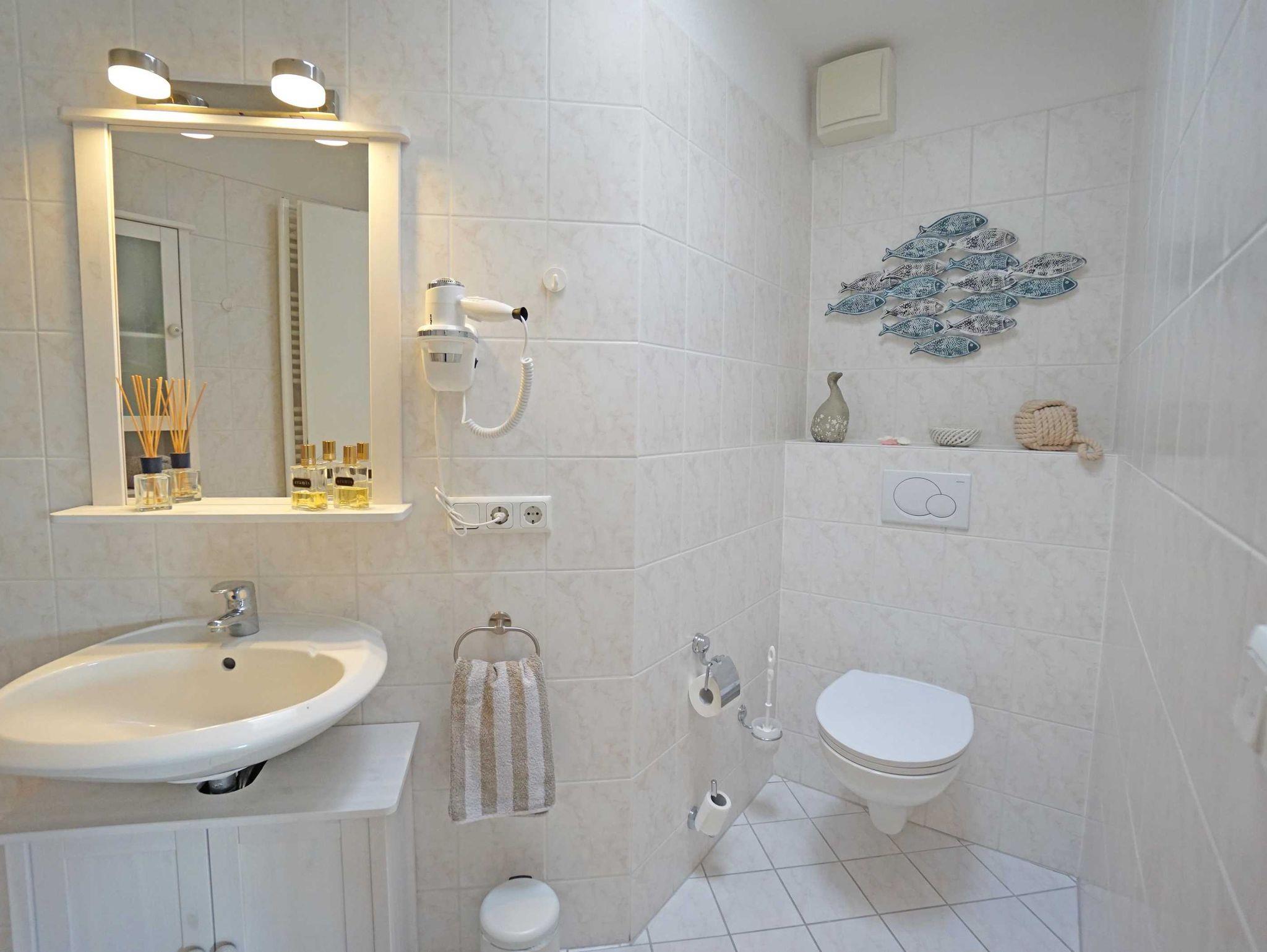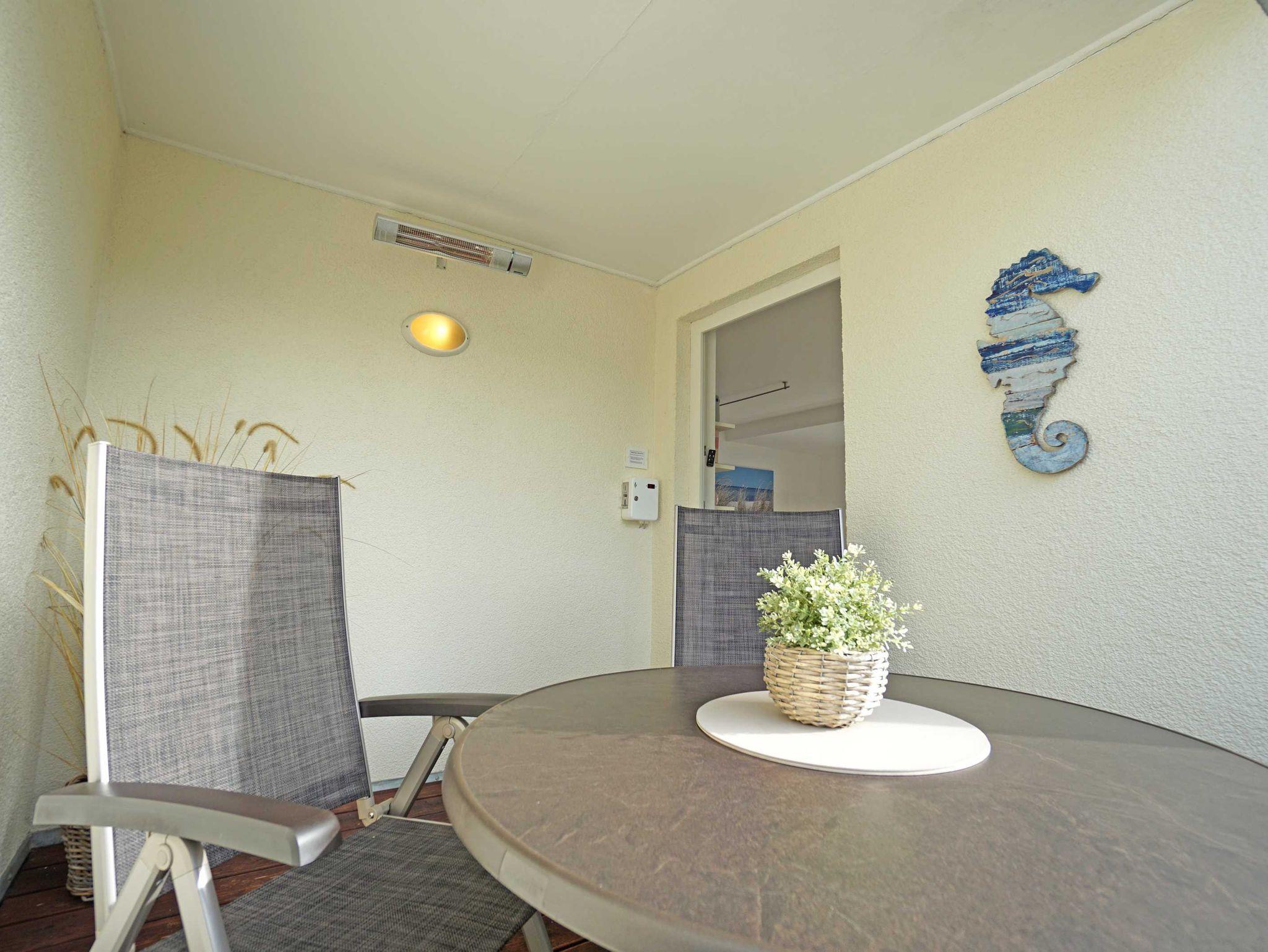 Die komfortable 1-Zimmerwohnung im Dachgeschoss (2.Etage) des Hauses ist 40 qm groß und bietet zwei Personen Platz. Die Wohnung verfügt über ein komplettes Wohnzimmer mit Esstisch, Radio, Smart-TV, einem Doppelbett mit Komforthöhe (1,80 m Liegefläche), sowie eine komplett ausgestattete Küchenzeile mit Geschirrspüler, Herd mit Ceranfeld. usw. und eine sonnige Loggia in Südlage mit münzbetriebenem Heizstrahler und Gartenmöbeln. Das Duschbad ist mit einem Fön ausgestattet.