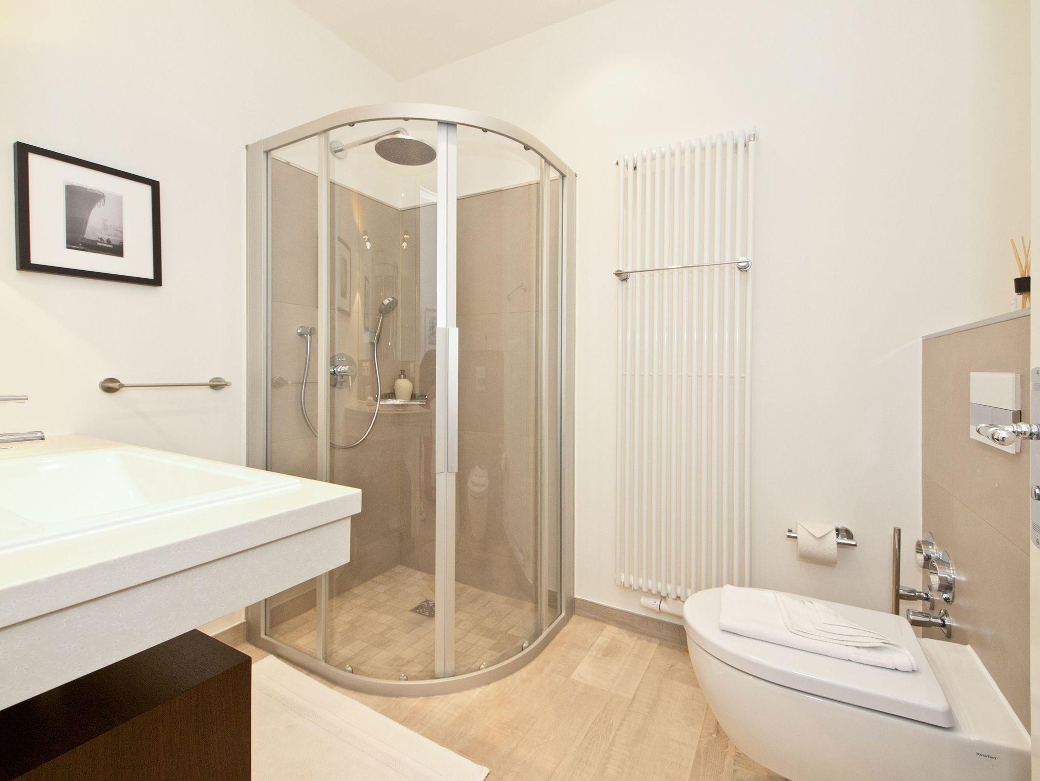Im Dachgeschoss der Villa Hintze erwarten Sie großzügige 125 qm Luxus! Die neu gestaltete Ferienwohnung 13 (für maximal 4 Personen) offeriert Ihnen ein Wohnambiente der besonderen Art und jede Menge Ausblick auf die Ostsee! Helle, großzügige Räume, moderne Kunst und Möbel von bekannten Designern erfüllen auch anspruchsvolle Urlaubswünsche. Der Wohnbereich mit Sitzgruppe vor dem Kamin und Flat-TV wird ergänzt durch den exklusiven Küchenbereich mit schönem Essplatz. Von hier hat man Zugang zum sonnigen Südbalkon der mit Gartenmöbeln und Sonnenliege von Garpa ausgestattet ist. An den Masterbedroom mit Doppelbett und großem Einbauschrank ist ein wunderschönes Bad mit Badewanne, großer Echtglasdusche und Doppelwaschtisch angegliedert. Und das Beste - schon morgens beim Aufwachen blicken Sie von Ihrem Bett aus über die Dächer der ersten Reihe auf das Meer! Ein zweites, kleineres Schlafzimmer bietet ebenfalls ein Doppelbett (1,60m) und auch ein zweites Bad mit Dusche steht zur Verfügung. Ein ganz besonderes Highlight ist die riesige 100 qm Dachterrasse (über die wohnungseigene Wendeltreppe zu erreichen), die einen traumhaften Blick auf das Meer und Heringsdorf bietet. Hier schaffen die Sitzgruppe, der Strandkorb oder eine bequeme Liegewiese genug Auswahlmöglichkeiten zum Relaxen. In einem separaten Abstellraum auf dem Hausflur können Waschmaschine und Trockener genutzt werden. Für Ihren Komfort sind die Betten bei der Anreise bezogen und Handtücher liegen bereit. Ein Pkw-Stellplatz steht auf dem abgeschlossenen Grundstück zur Verfügung. Das WLAN in der Wohnung ist kostenlos nutzbar.