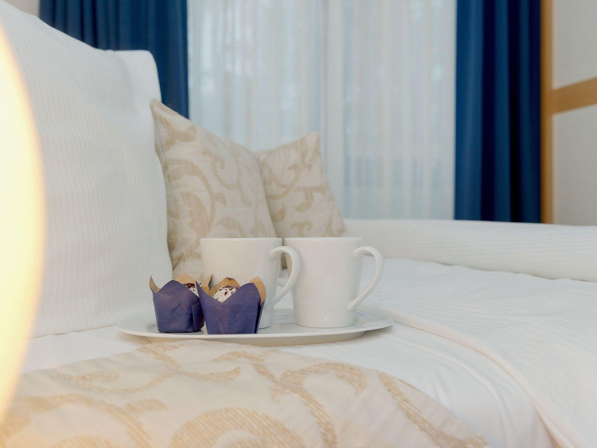 Im Schlafzimmer ist die Aufbettung mit einem Kleinkind bis 3 Jahre in einem Babyreisebett möglich. Das Babyreisebett können Sie gegen Gebühr hinzubuchen.