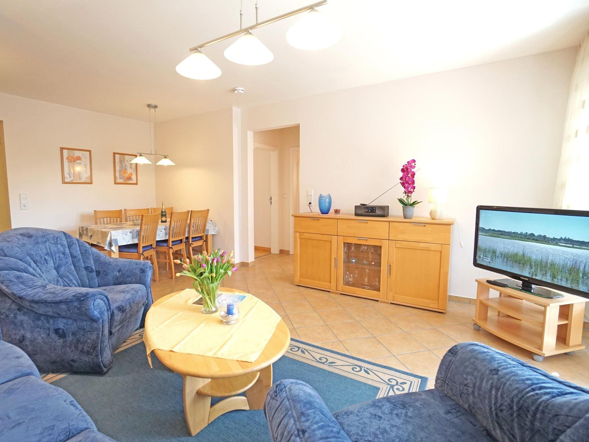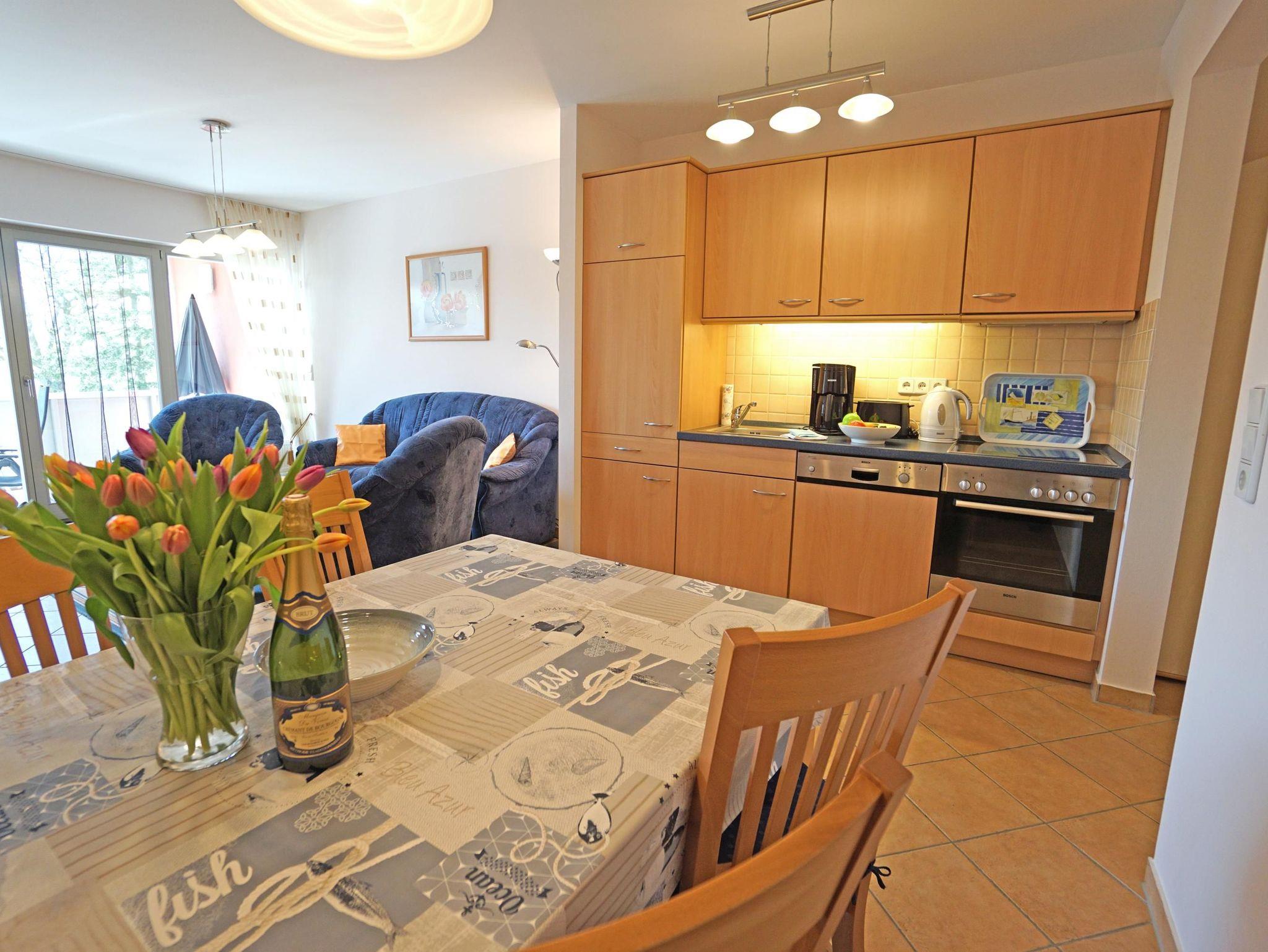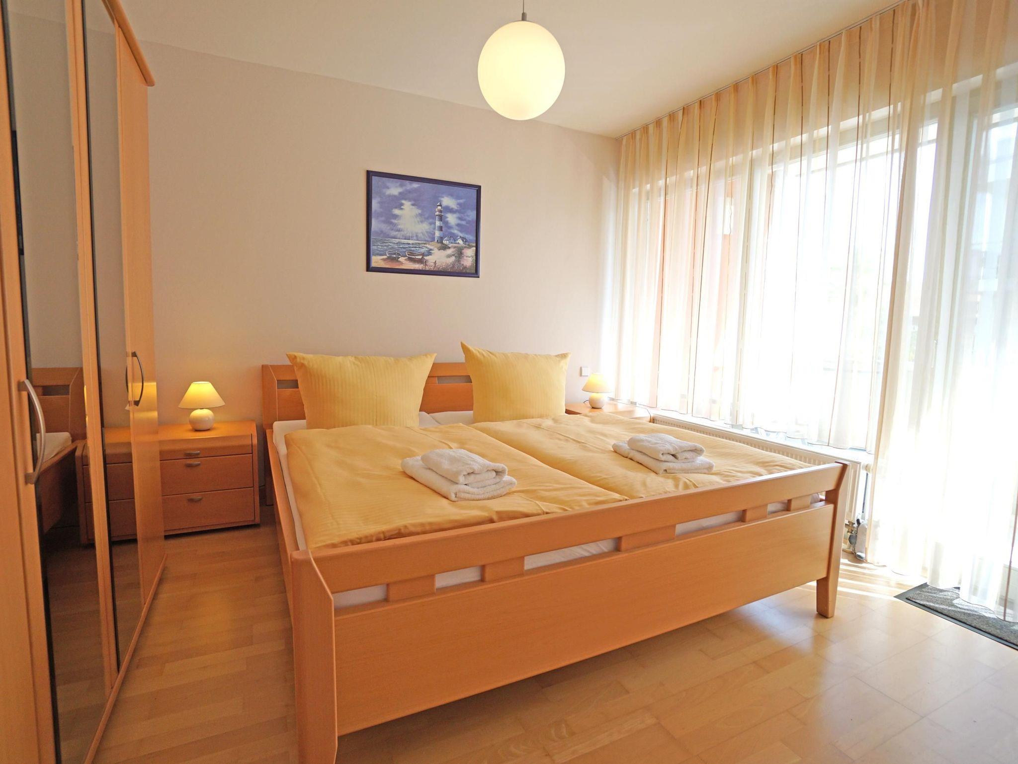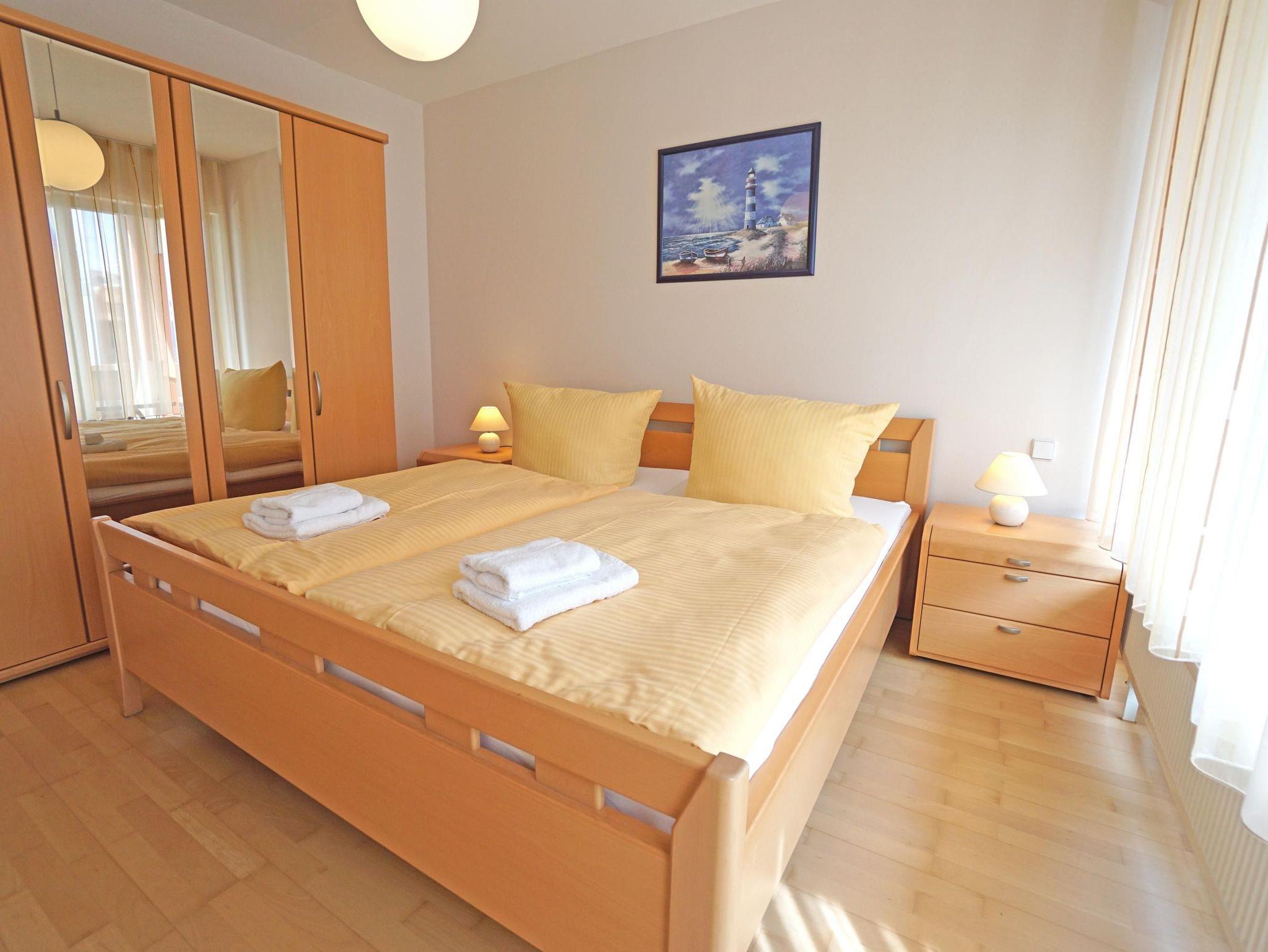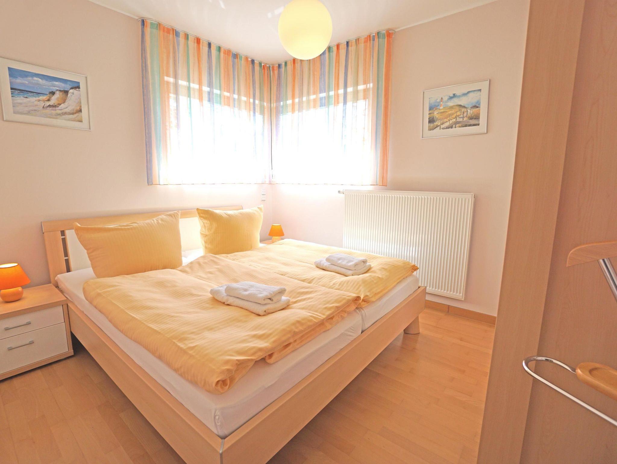 Die hochwertig eingerichtete 3-Zimmer Ferienwohnung (65m²) befindet sich im ersten Obergeschoss des Hauses Villa Marlen. Das geräumige Wohnzimmer mit offener, vollausgestatteter Küchenzeile, großem Esstisch und gemütlicher Couch lässt keine Wünsche offen. Vom Wohnzimmer aus erreicht man den großen Balkon. Zwei Schlafzimmer mit jeweils einem großen Doppelbett (180x200) und einem großen Kleiderschrank bieten genug Platz für bis zu 4 Personen. Eines der beiden Schlafzimmer hat einen eigenen Balkon. Unter anderem verfügt diese Ferienwohnung über ein Duschbad und einem weiteren Badezimmer mit Badewanne.