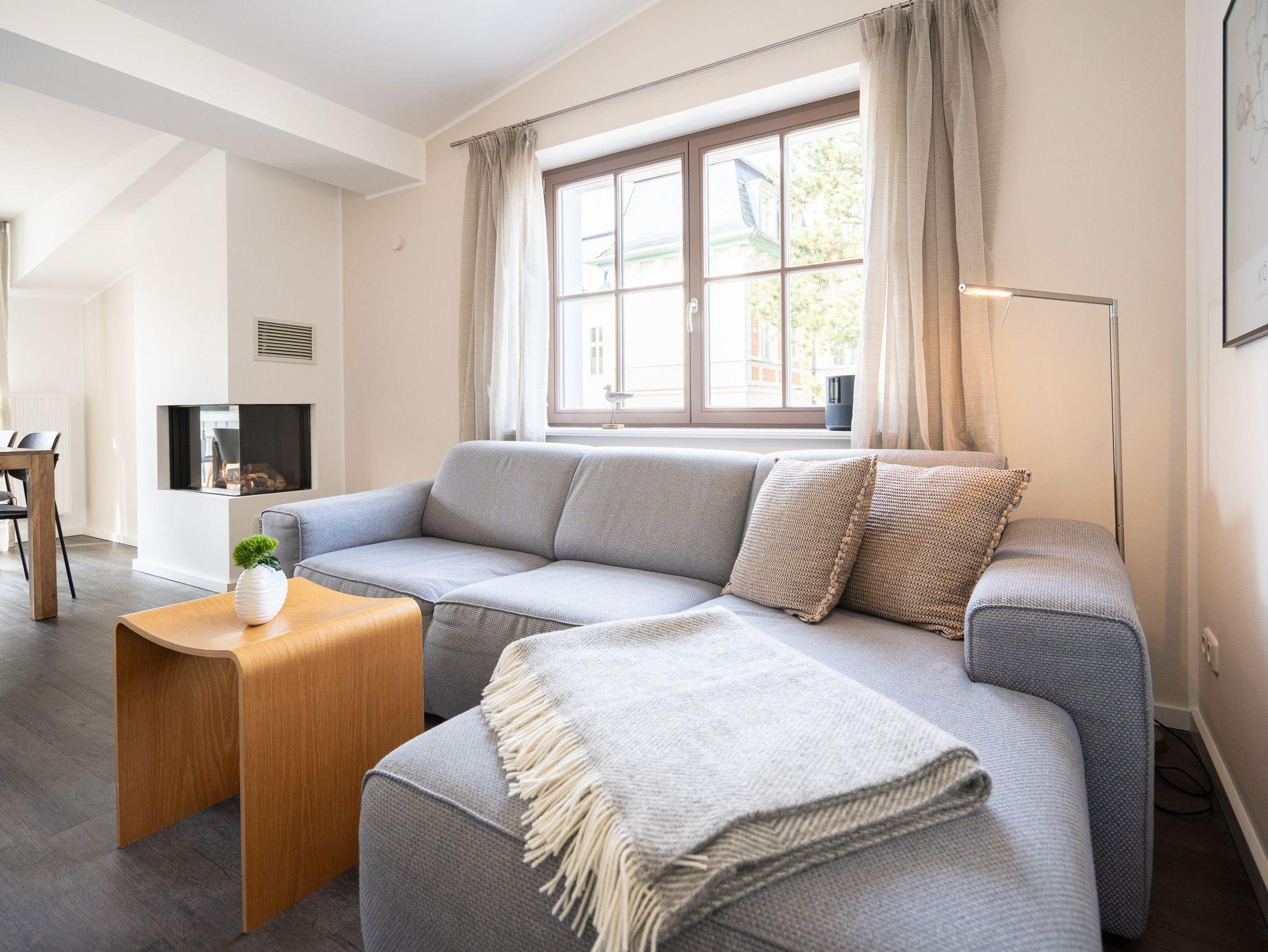 Im Dachgeschoss dieses charmanten Hauses erwartet Sie auf 61 qm eine modern gestaltete 3-Raum-Ferienwohnung, die Platz für bis zu 4 Personen bietet. Freuen Sie sich auf eine geschmackvolle Einrichtung und liebevoll ausgewählte Details, die Ihrem Aufenthalt das gewisse Etwas verleihen. Der Wohnbereich lädt mit einer gemütlichen Couch, einem Flat-TV und einem eleganten Gas-Designkamin, der bequem per Fernbedienung gesteuert werden kann, zum Entspannen ein. Gleich daneben finden Sie die offen gestaltete, voll ausgestattete Küche sowie einen einladenden Essbereich. Von hier aus gelangen Sie direkt auf den Südbalkon perfekt, um die Sonne zu genießen oder den Tag bei einem Glas Wein ausklingen zu lassen. Zwei Schlafzimmer mit komfortablen Boxspringdoppelbetten bieten erholsame Nächte. Das moderne Badezimmer mit Dusche rundet das Angebot ab. Für zusätzlichen Komfort sind die Betten bei Anreise für Sie bezogen und Handtücher liegen bereit. Ein eigener Pkw-Stellplatz direkt am Haus ist selbstverständlich inklusive. Auf Wunsch stellen wir Ihnen gerne ein Kinderreisebett (ohne Matratze und Bettzeug) sowie einen Hochstuhl gegen einen kleinen Aufpreis zur Verfügung. Das kostenfreie WLAN sorgt dafür, dass Sie jederzeit online bleiben können. Genießen Sie Ihren Aufenthalt wir freuen uns auf Sie!