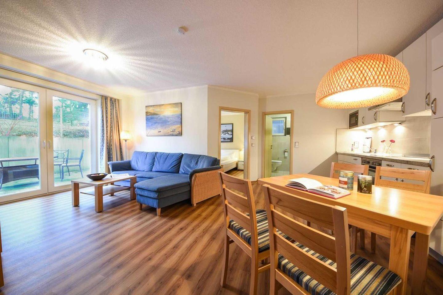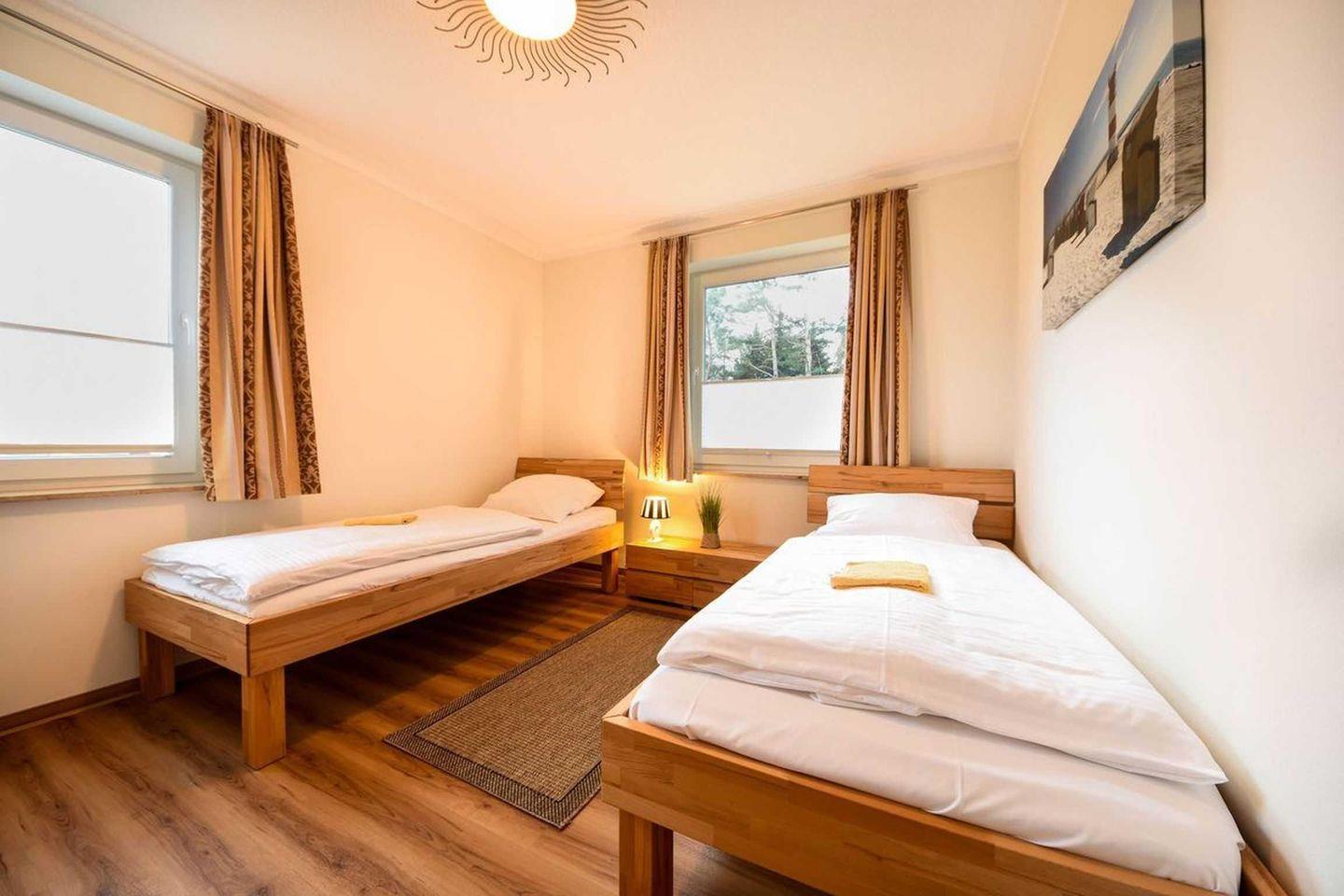 Dieses großzügige und modern eingerichtete Appartement befindet sich im Erdgeschoss eines neu errichteten Hauses und ist ideal für vier Personen. Die geschmackvolle Einrichtung entspricht hohen Ansprüchen und lässt keine Wünsche offen. Neben einem Wohnzimmer mit voll ausgestatteter, integrierter Küche und einem Esstisch finden Sie ein hochwertiges Bad mit Dusche und zwei Schlafzimmer vor. Ein Schlafzimmer verfügt über ein Doppelbett, das zweite über zwei getrennt stehende Einzelbetten. Vom Wohnzimmer aus gelangen Sie auf die Terrasse, auf der es sich herrlich entspannen lässt.