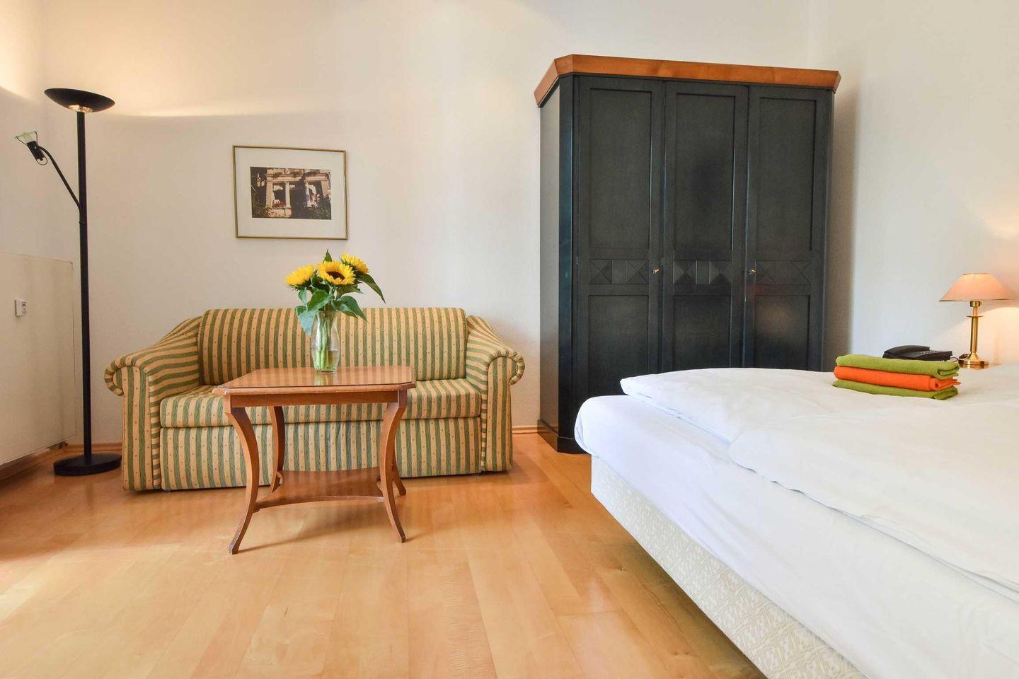 WLAN sowie ein Parkplatz auf dem Grundstück steht Ihnen kostenfrei zur Verfügung. Ihre Fahrräder können Sie im abschließbaren Fahrradraum auf dem Grundstück unterstellen (je nach Platzangebot). Weitere Fahrradständer (teilweise überdacht) stehen ebenfalls zur Verfügung. Im Keller des Hauses stehen den Gästen eine Waschmaschine sowie ein Trockner inklusive Bügelbrett und Bügeleisen zur Nutzung bereit.