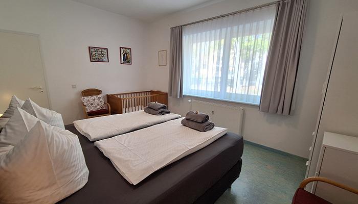 - zwei geräumige Schlafzimmer mit Boxspringbett (1,80m) und Doppelbett (1,60m)