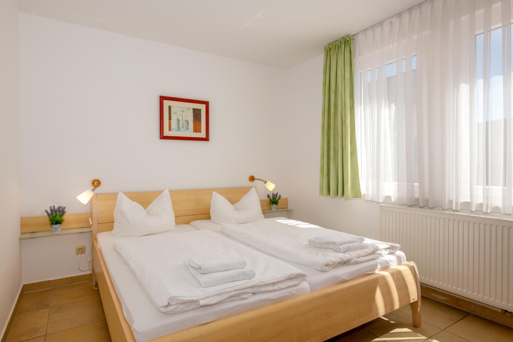 Die Wohnung ist ideal für Familien oder kleine Gruppen, da sie ausreichend Platz und Komfort bietet. Ein angenehmer Aufenthalt ist durch die modernen Ausstattungsmerkmale wie die Küchenzeile und die Terrasse gewährleistet. Die Möglichkeit des barrierefreien Zugangs und der eigene Parkplatz sorgen zusätzlich für Bequemlichkeit und Flexibilität während des Aufenthalts. Die Erdgeschosswohnungen haben eine optimale Größe von ca. 65 m² und bieten somit ausreichend Platz für 4 Personen. Die 2 getrennten Schlafzimmer bieten Privatsphäre und Rückzugsmöglichkeiten. Die Terrasse mit Sitzmöglichkeiten für bis zu 4 Personen bietet eine gemütliche Möglichkeit, gemeinsam Zeit zu verbringen. Insgesamt bieten die Erdgeschosswohnungen eine ideale Kombination aus Wohnkomfort und praktischer Ausstattung für einen entspannten Aufenthalt.
