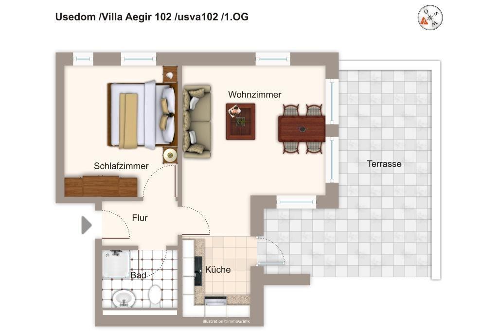 Die „Villa Aegir“ steht für Usedomer Bäderromantik im Ostseebad Heringsdorf. Das 56 qm große 2-Zimmer-Apartment mit einem terrassengroßem Balkon ist für bis zu 4 Personen geeignet.