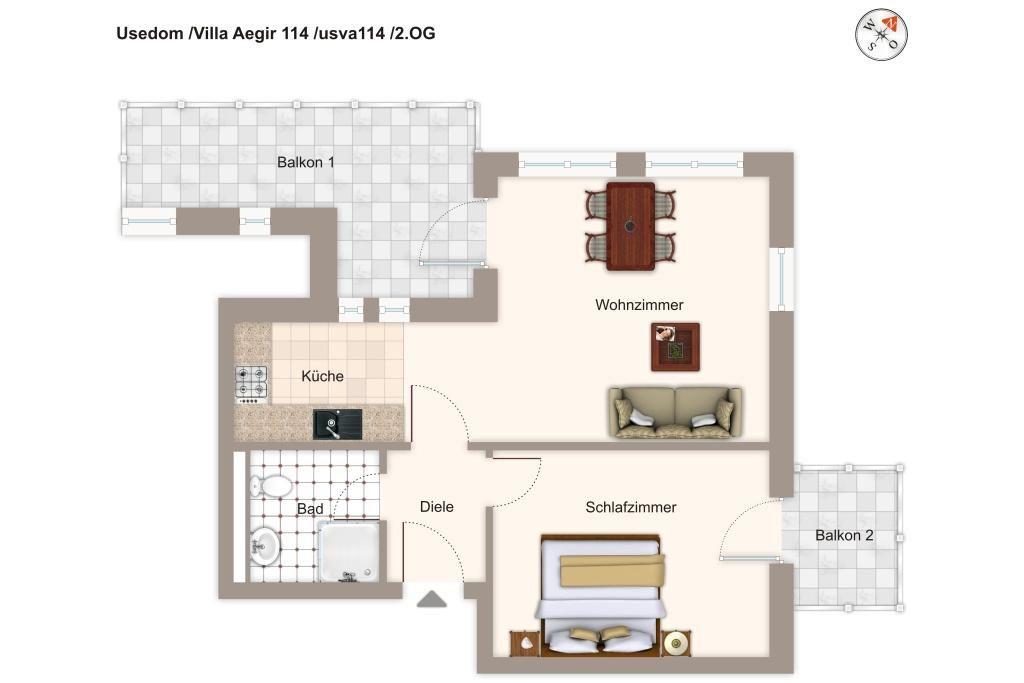 Hübsches Apartment mit zwei Balkonen - nur 100m zum kilometerlangen Ostseestrand