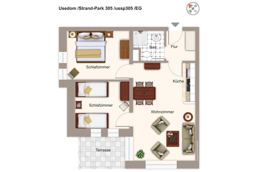 Das südwestlich gelegene Apartment befindet sich im Erdgeschoss von Haus 3 in der familienfreundlichen Ferienanlage „Strand-Park“ - nur wenige Meter zum feinsandigen und kilometerlangen Strand von Heringsdorf gelegen