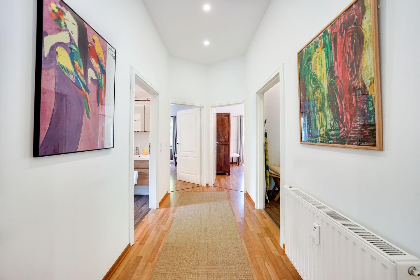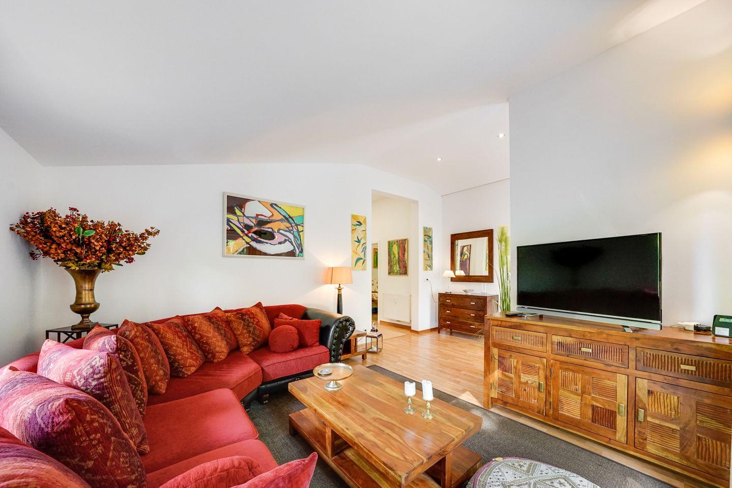 Zusätzlich zu der Wohnung, den Balkonen und der Sauna, haben Sie auch Zugang zum parkähnlich angelegtem Garten und einer überdachten Sitzecke mit Feuerstelle.