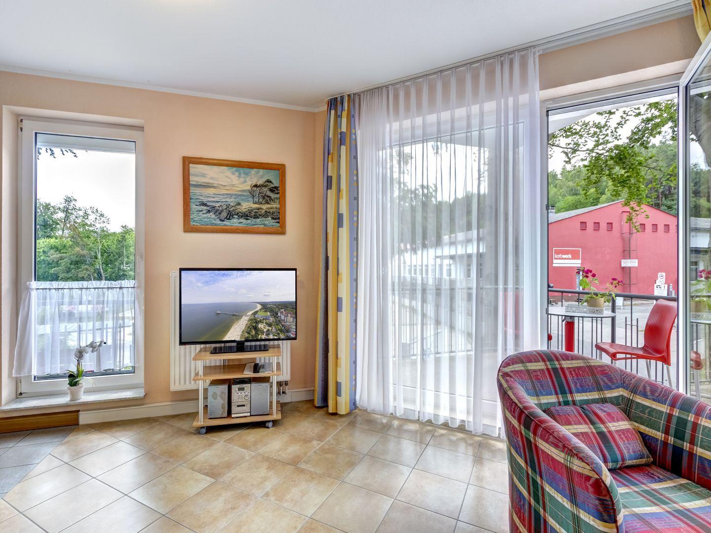 Die helle und freundliche 2-Raum-Ferienwohnung "Marie 2" mit Balkon bietet Ihnen den idealen Rückzugsort für einen entspannten Urlaub.