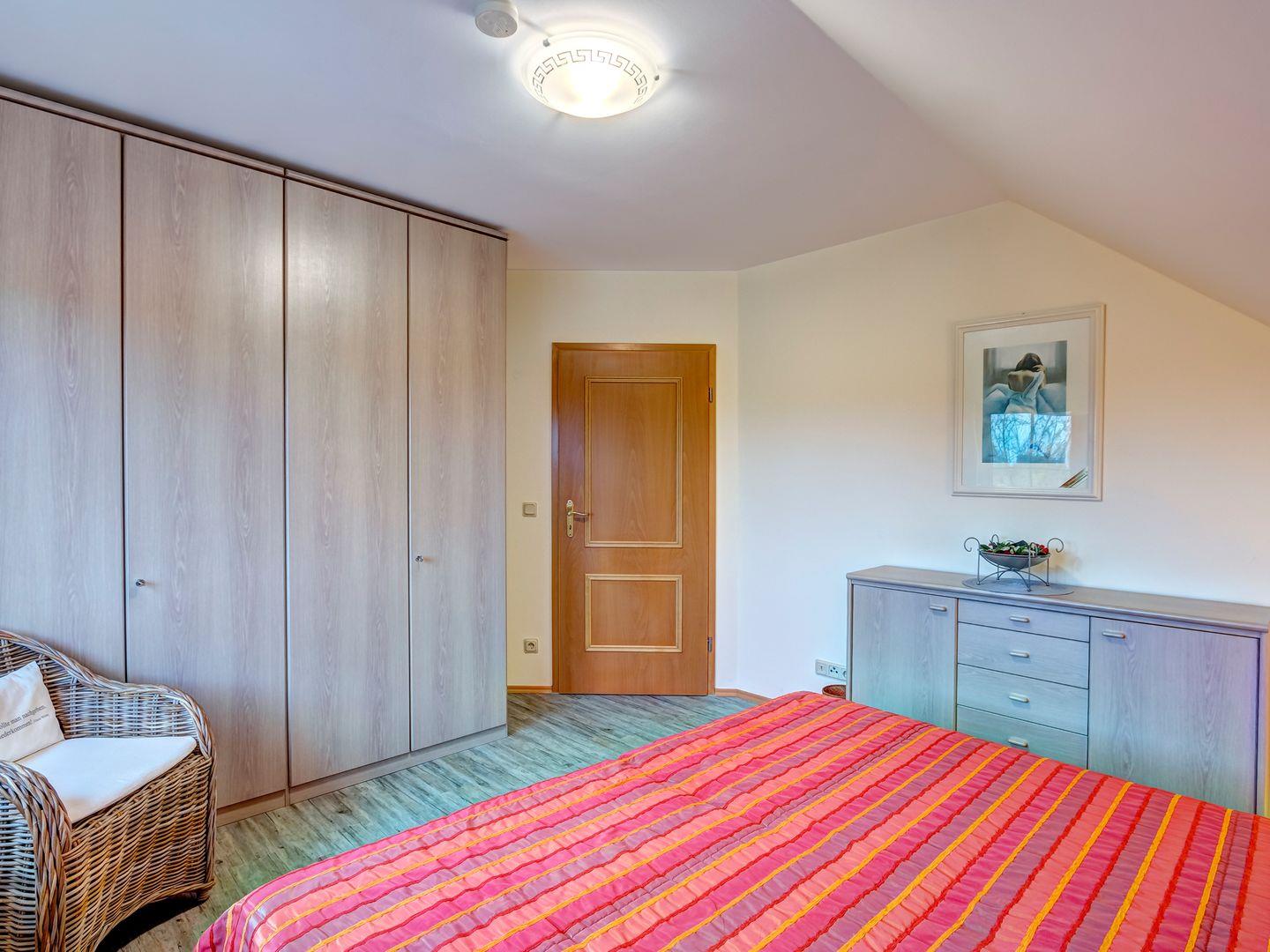 Das vollwertige Schlafzimmer lädt mit einem komfortablen Doppelbett zum erholsamen Schlaf ein. Öffnen Sie am Morgen die Augen und genießen Sie die wunderschöne Aussicht aus dem Fenster auf die naturreiche Umgebung, die Ihnen einen perfekten Start in den Tag ermöglicht. Oder entspannen Sie bei einem TV-Abend mit eigenem Fernseher am Bett.