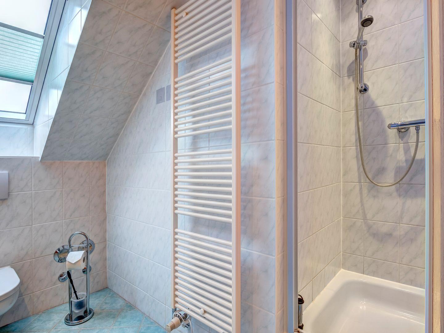 Das frisch renovierte Badezimmer, ausgestattet mit einem Fenster, bietet eine angenehme Atmosphäre. Hier erwartet Sie eine komfortable Dusche, die nach einem ereignisreichen Tag für erfrischende Momente sorgt.