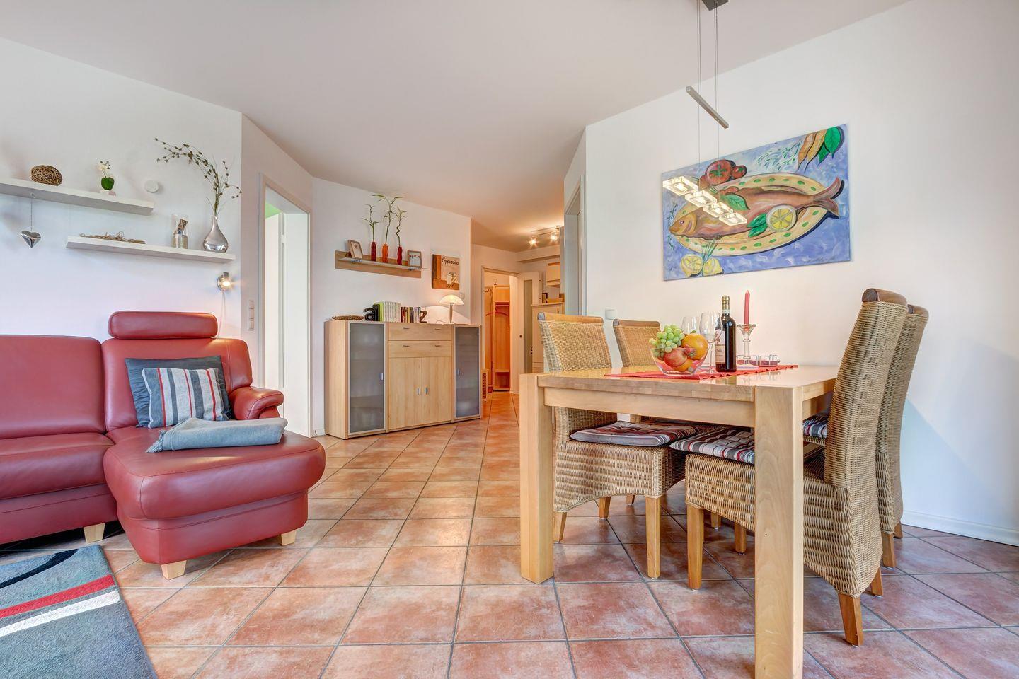Die 3-Raum-Ferienwohnung GP12, ausgezeichnet mit 5 DTV-Sternen, befindet sich im 2. Obergeschoss der exklusiven Ostseeresidenz und besticht durch ihre hochwertige, moderne Ausstattung in Wohn-, Schlaf- und Küchenbereich.