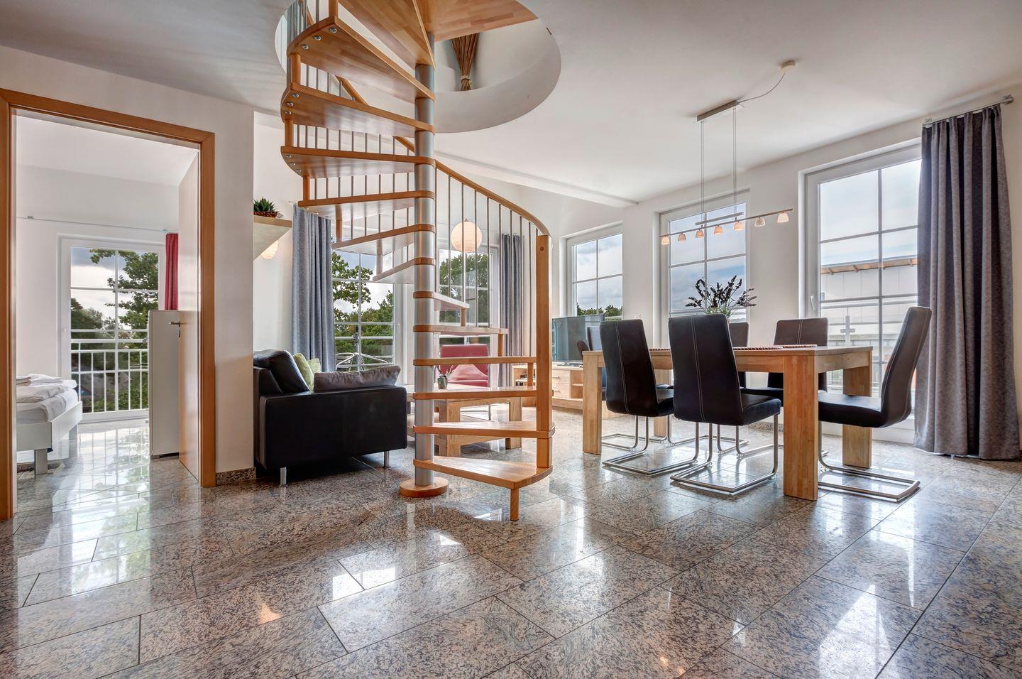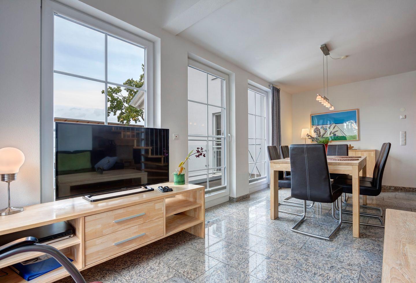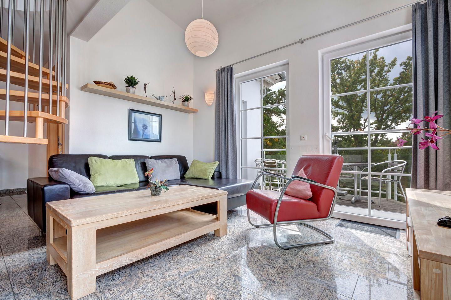 Die im 3. Obergeschoss und Dachgeschoss einer exklusiven Wohnanlage gelegene Wohnung GP23 besticht durch ihre großzügige Raumaufteilung. Im weitläufigen Wohn- und Essbereich können Sie die entspannte Atmosphäre genießen. Drei Schlafzimmer bieten Platz für bis zu 6 Personen.
