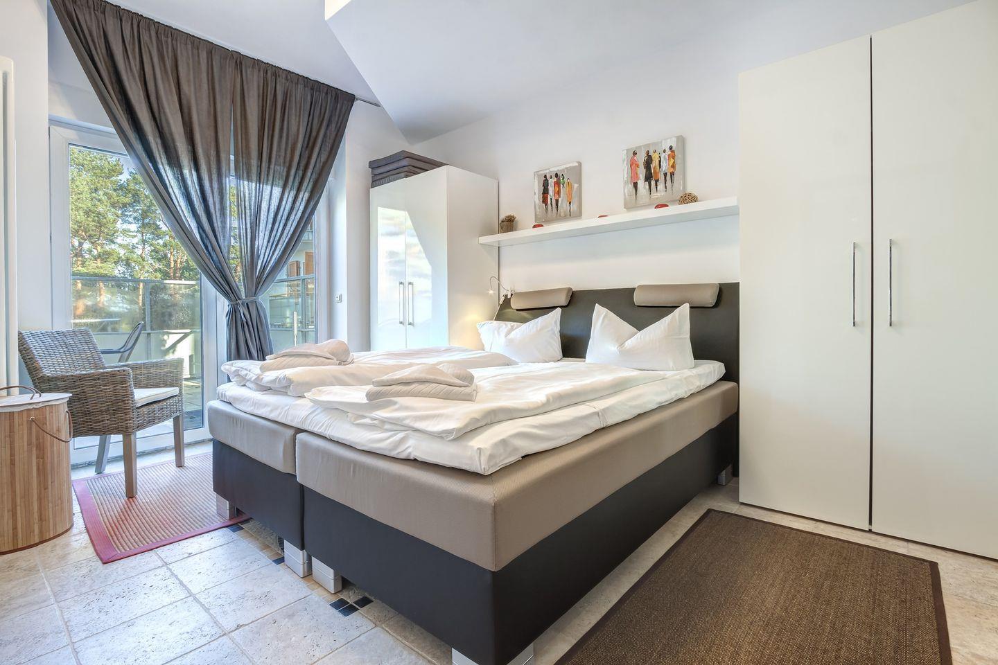 Das 120 qm große Appartement für 5 Personen und ein Kleinkind in der Residenz Bellevue verspricht einen besonderen Urlaub. Der großzügige Wohnbereich mit Ledersitzgruppe und Essbereich öffnet sich zur sonnigen Terrasse mit Gartenmöbeln und Blick auf die Promenade. Die vollausgestattete Küche erfüllt alle Wünsche. Zwei Schlafzimmer, darunter eines mit Doppel-Boxspringbett und eines mit Doppelbett und Schlafsessel, bieten erholsame Nächte.