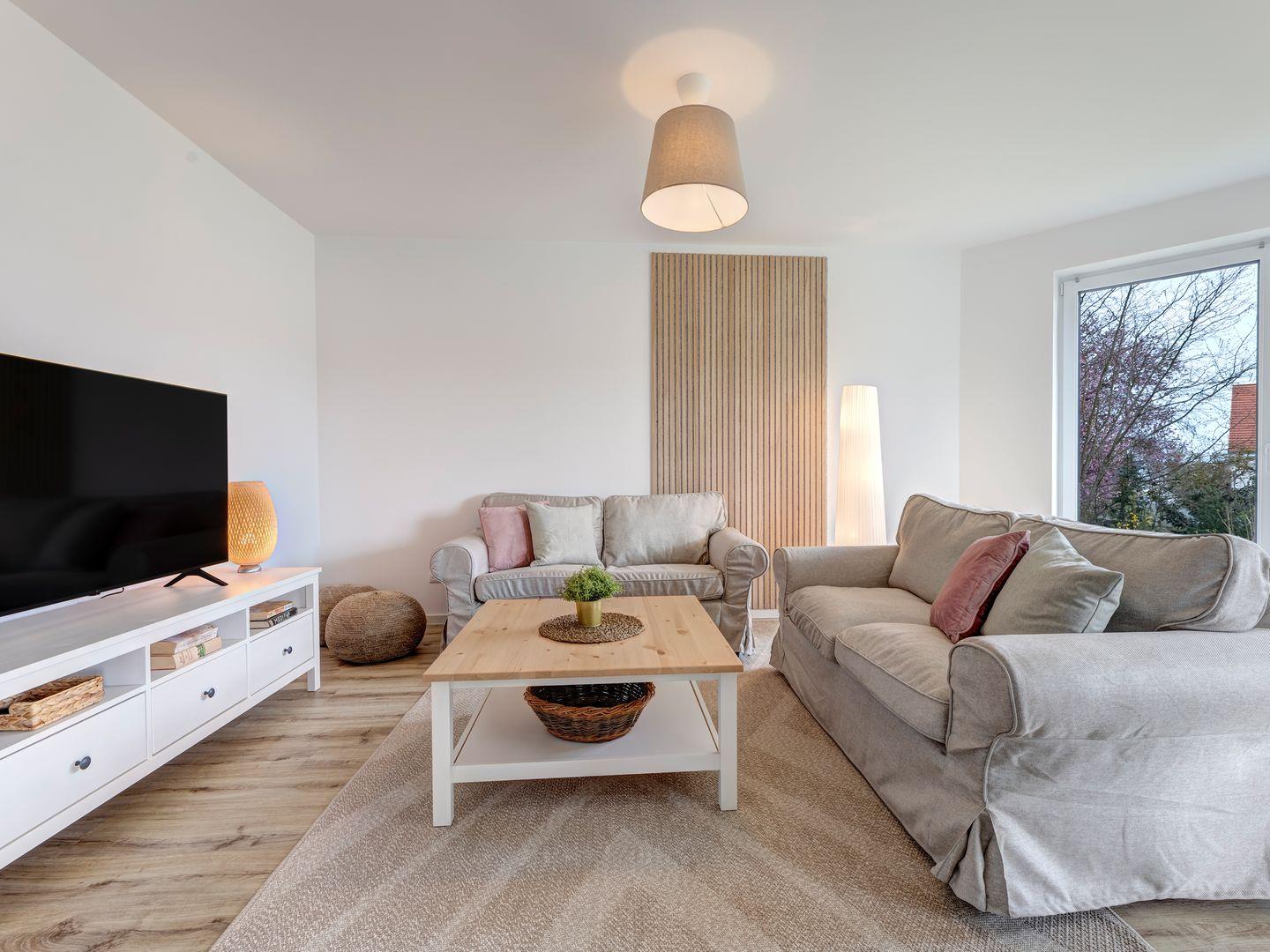 Diese stilvolle Unterkunft bietet Ihnen alles, was Sie für einen erholsamen Aufenthalt benötigen. Mit insgesamt 4 Zimmern, darunter 3 Schlafzimmer, 1 Badezimmer und 1 Gäste-WC, sowie einer offenen Küche, die sich zum großzügigen Wohnbereich hin öffnet, genießen Sie hier viel Raum und Komfort.