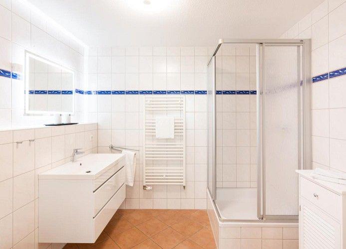 Das Bad ist mit einer Dusche und WC ausgestattet.
