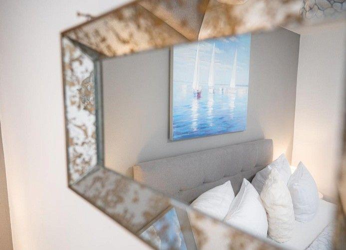 Im Schlafzimmer bietet das Boxspringbett Platz für erholsame Nächte. Hier stehen Ihnen ein zweiter Flachbild-Fernseher und ein Kleiderschrank zur Verfügung.