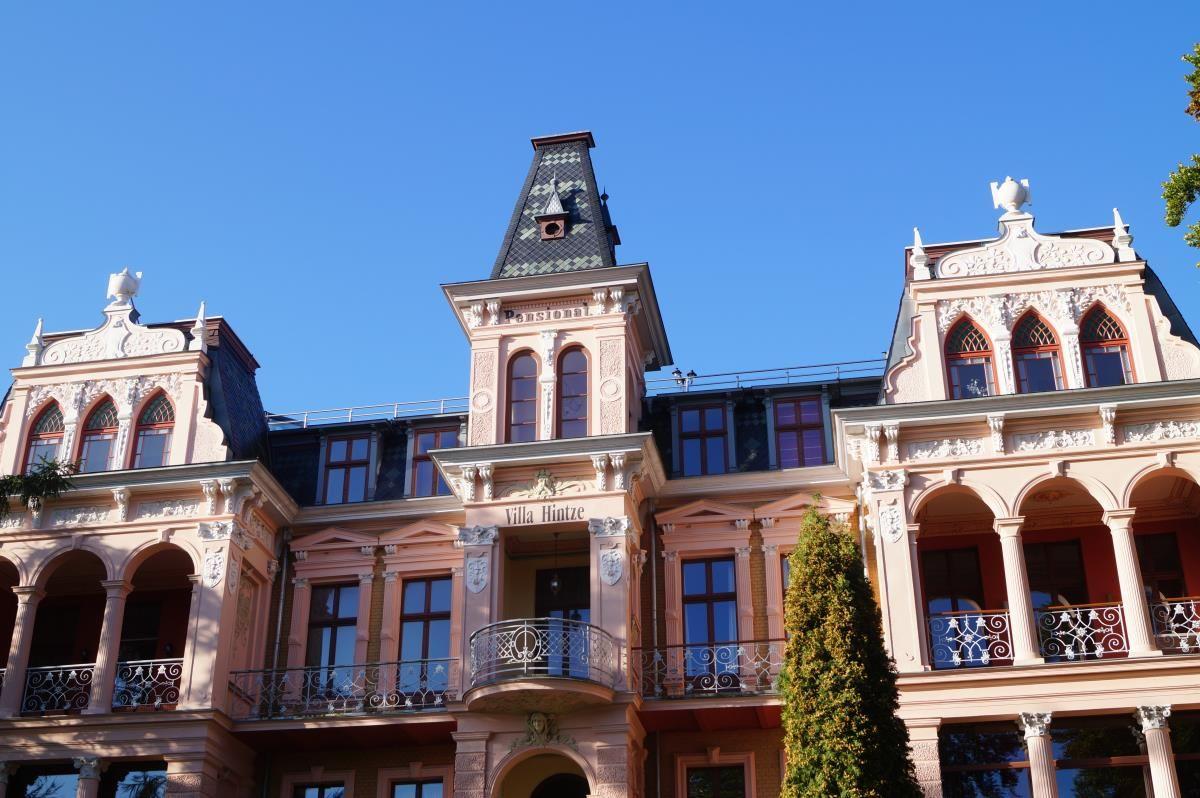 Verbringen Sie Ihren Usedom-Aufenthalt in einer der schönsten und glanzvollsten Villen der Bäderarchitektur! Nur weniger Meter (ca. 100) vom schönen Sandstrand entfernt steht die Villa Hintze in der Delbrückstraße. Mit ihrer reich verzierten Fassade zählt das Haus zu den repräsentativsten Villen dieser Epoche. Auf einem gepflegten Anwesen liegt die Villa etwas erhöht und bietet so von den oberen Etagen einen herrlichen Blick auf die Ostsee und Umgebung.