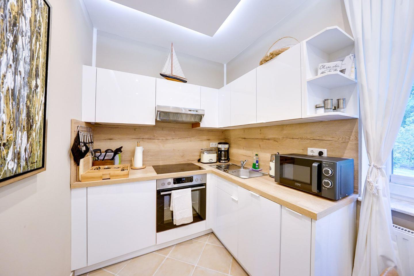 Der wunderschöne, direkt angrenzende Wald lädt mit einem Fitness-Parcours zu aktiver Erholung ein. Und wenn Sie doch einmal das Meer ruft: Den Ortskern von Heringsdorf und den Strand erreichen Sie in nur etwa 10 Minuten zu Fuß oder 5 Minuten mit dem Fahrrad.