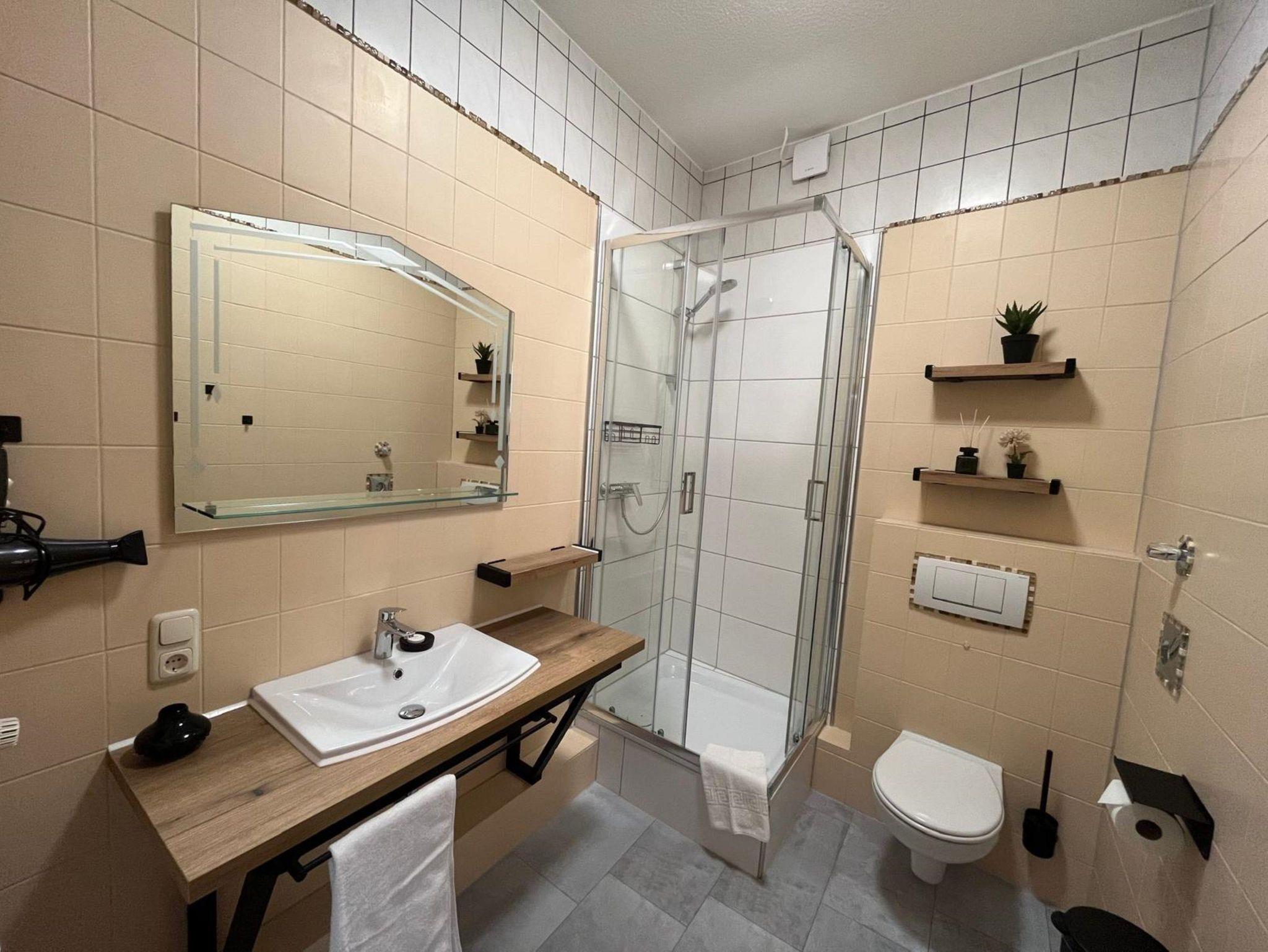 Das Bad ist mit Dusche und WC ausgestattet. Ebenso finden Sie eine Waschmaschine in der Wohnung.