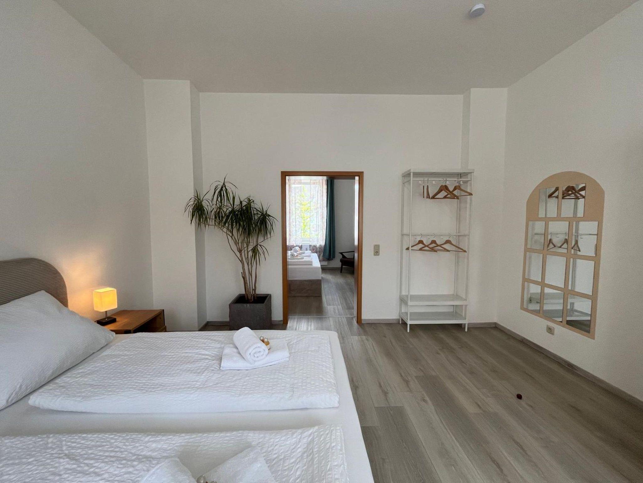 Nebenan befinden sich zwei Schlafzimmer mit Doppelbetten, die zum Träumen einladen.