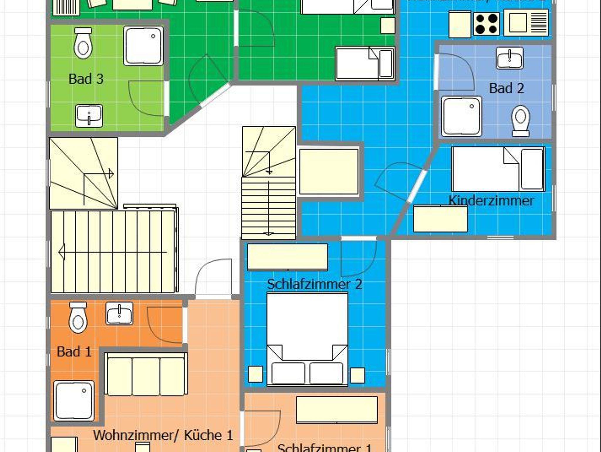 Es befinden sich im Haus in der ersten Etage 3 Ferienwohnungen für jeweils bis zu 4 Gästen. Im Garten mit Blick auf Teich und Wald befindet sich unser gemütlicher Bungalow auch für bis zu 4 Gästen. Alle Wohnungen sind einzeln abschließbar und über einen seperaten Eingang nutzbar.