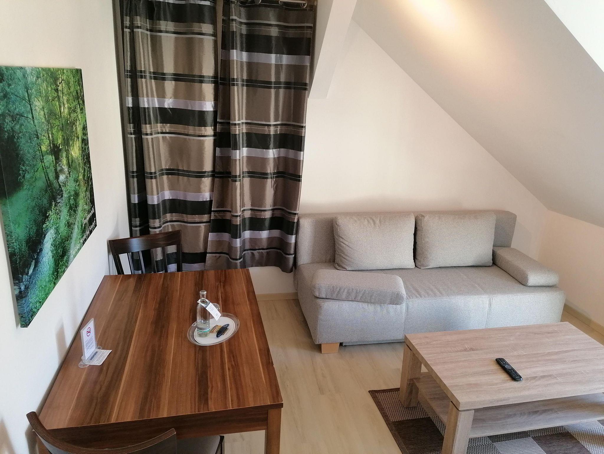 Dieses modern ausgestattete Komfort-Appartement bietet ein gemütliches Zuhause auf Zeit und eignet sich ideal für Paare, kleine Familien oder Geschäftsreisende. Es verfügt über ein separates Schlafzimmer mit einem bequemen Bett und einem geräumigen Kleiderschrank sowie ein Badezimmer mit Dusche, WC und Föhn.