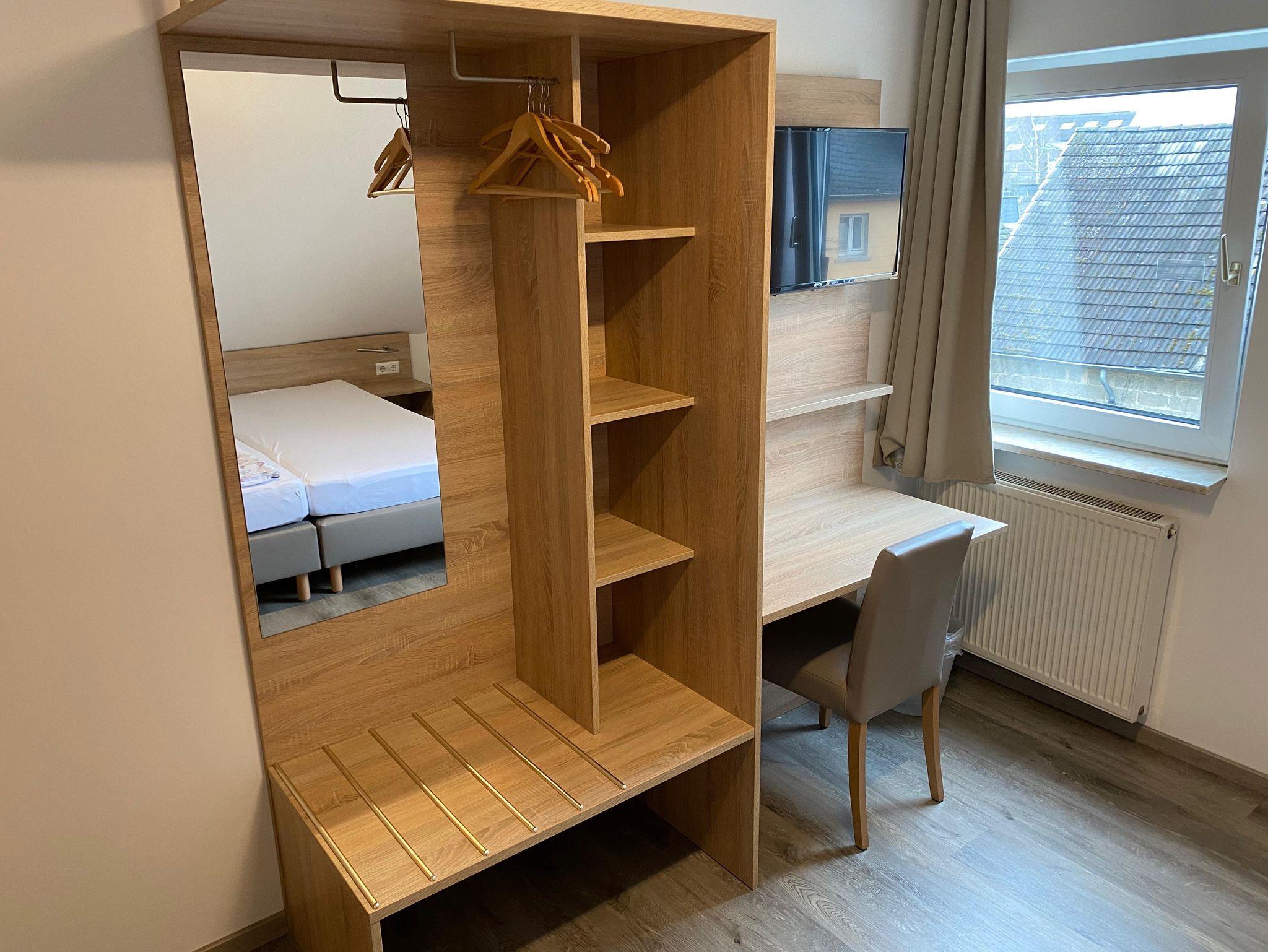 Unsere Klassik-Zimmer sind funktional und gemütlich eingerichtet – ideal für einen entspannten Aufenthalt. Zur Ausstattung gehören ein komfortables Bett sowie ein offener Kleiderschrank, der ausreichend Platz für Ihre Kleidung bietet. Das Badezimmer ist mit Dusche, WC und Föhn ausgestattet.