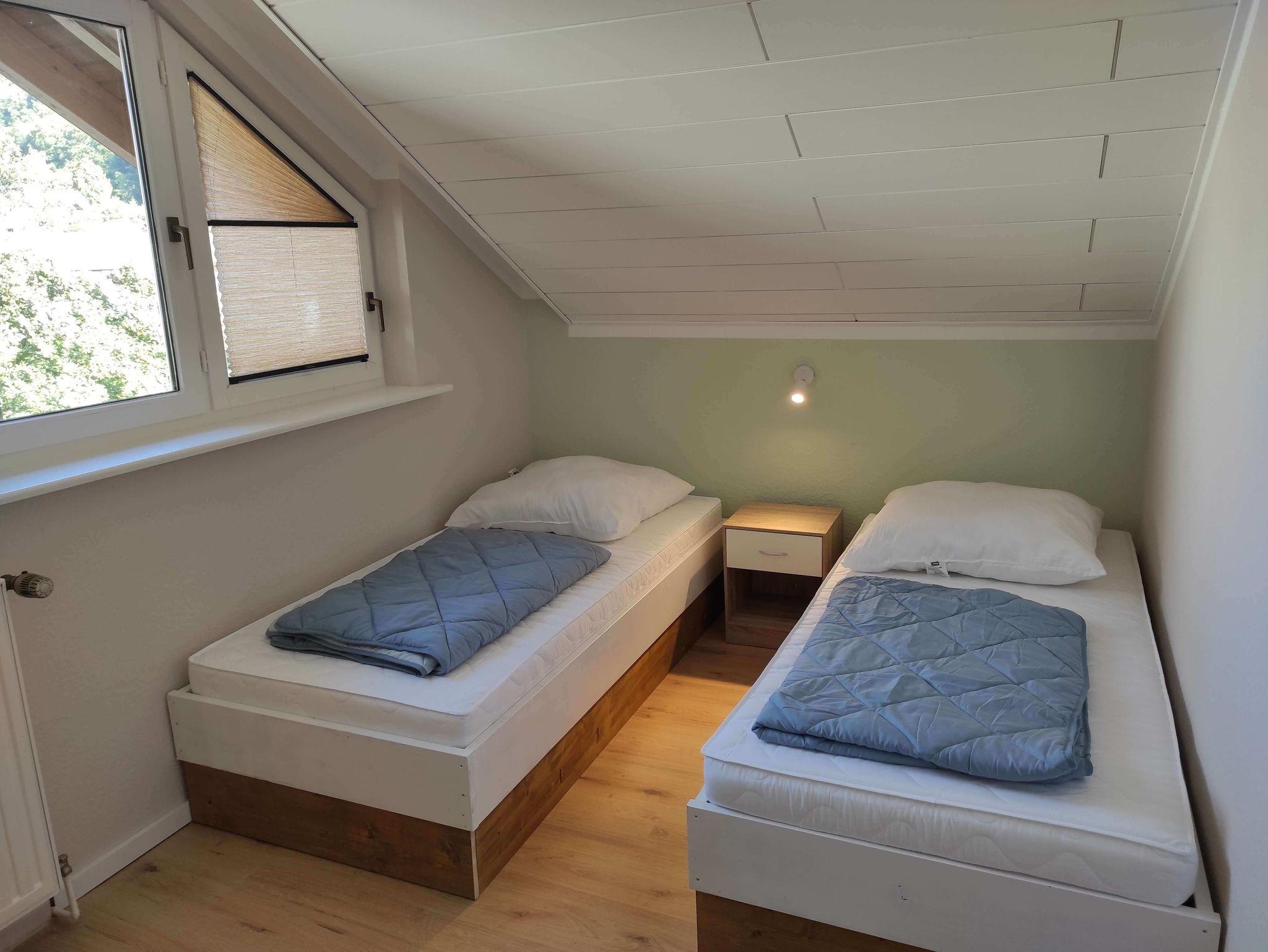 ein Schlafzimmer mit einem großen Doppelbett, in dem Sie traumhaft schlummern werden und ein Schlafzimmer mit 2 Einzelbetten,