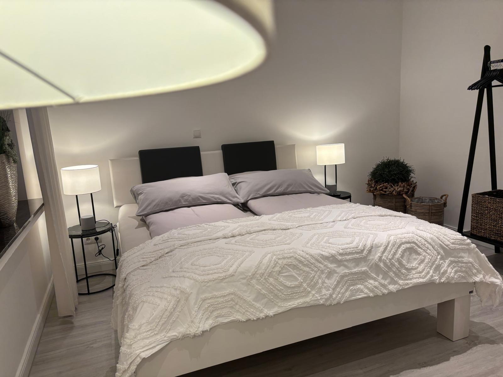 In unserer 93 qm großen, lichtdurchfluteten und großzügig geschnittenen Wohnung finden bis zu 6 Personen, verteilt auf drei Schlafzimmer, Platz. Das erste Schlafzimmer ist mit einem Doppelbett und hochwertigen und namhaften Matratzen ausgestattet. Im zweiten Schlafzimmer befindet sich ein gleichwertiges Einzelbett sowie ein hochwertiges Schlafsofa. Im Wohnzimmer können es sich zwei Personen auf dem geräumigen Schlafsofa gemütlich machen.