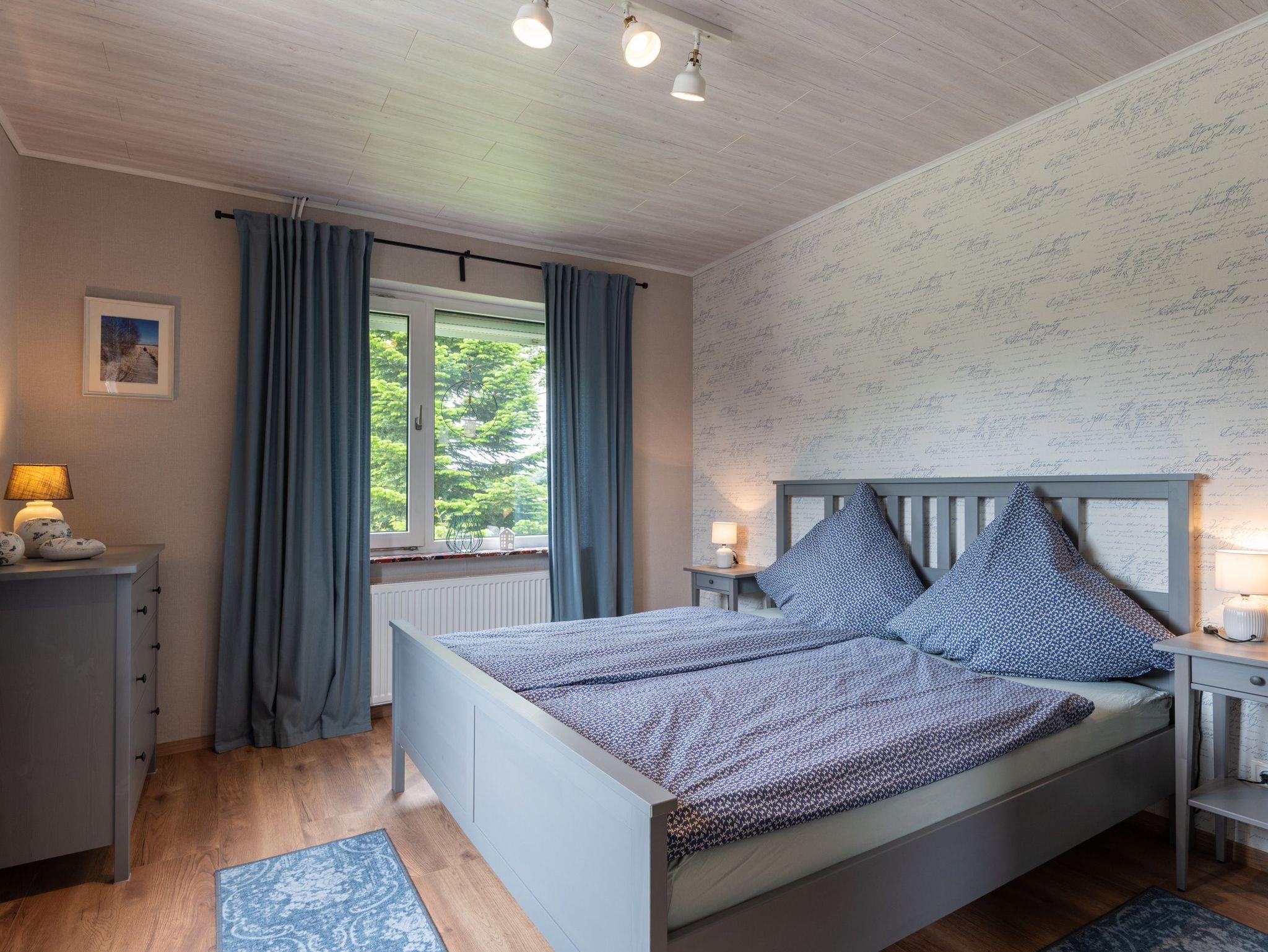 Ein Schlafzimmer mit einem Doppelbett (180x200) befindet sich im Erdgeschoss. Zwei weitere Schlafzimmer mit jeweils zwei Einzelbetten (90x200) im Obergeschoss.