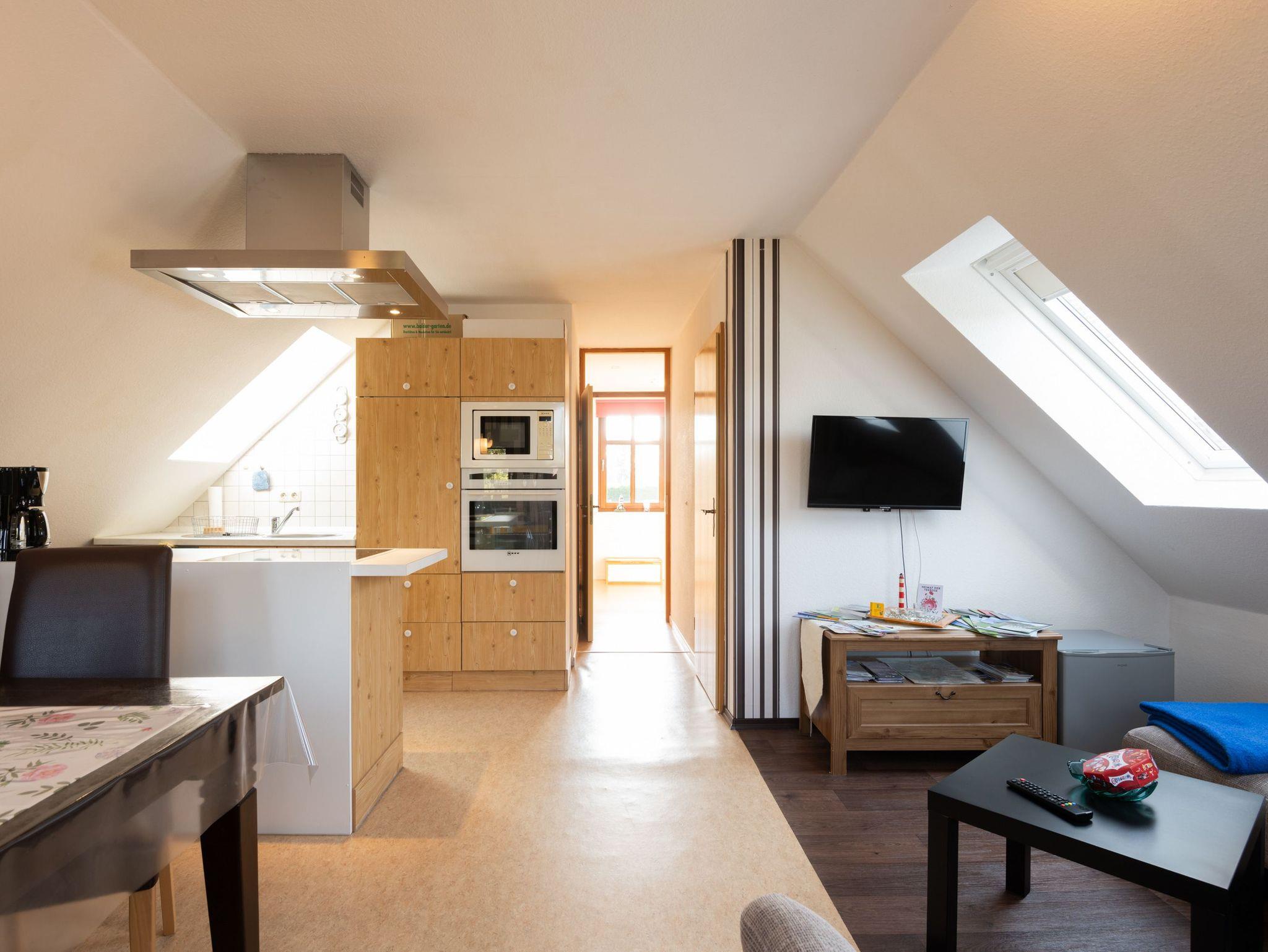 Schöne und geschmackvoll eingerichtete Ferienwohnung auf zwei Etagen am Ortsrand von Hesel (Ort ca. 4.000 Einwohner). Im Obergeschoß der Ferienwohnung befindet sich die Wohnküche mit zwei Schlafräumen. Die Wohnküche ist ausgestattet mit einer Spülmaschine, Wasserkocher, Mikrowelle, Kaffeemaschine, Toaster und Eierkocher. Zur Wohnküchenausstattung gehört eine gemütliche Wohnzimmergarnitur, eine Einbauküche mit einem Esstisch mit vier Stühlen.