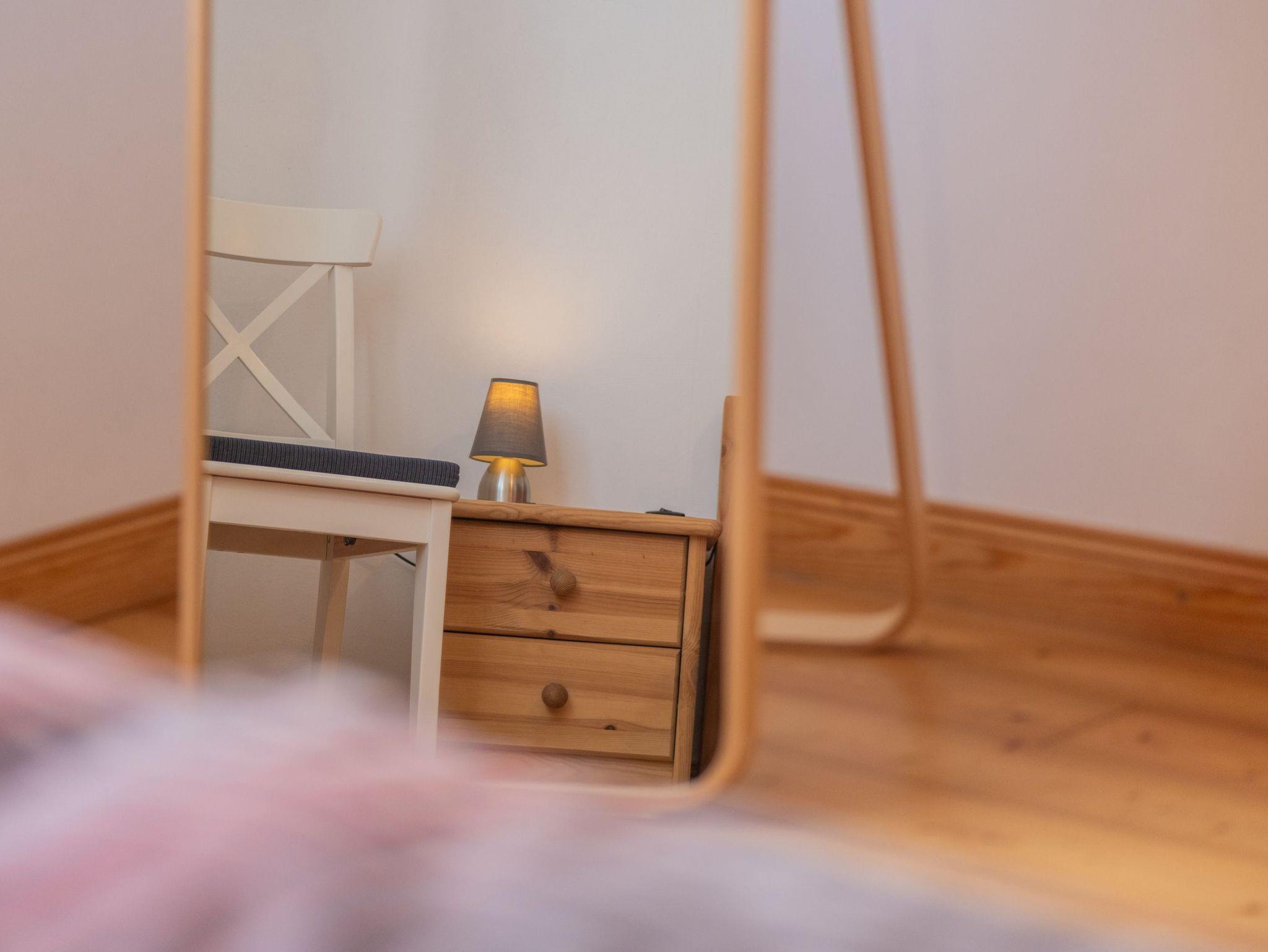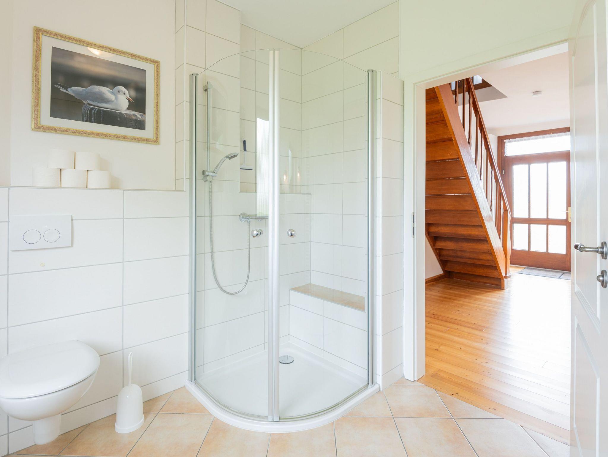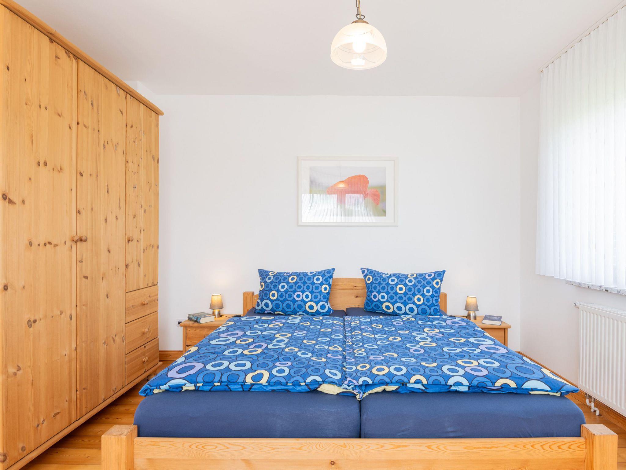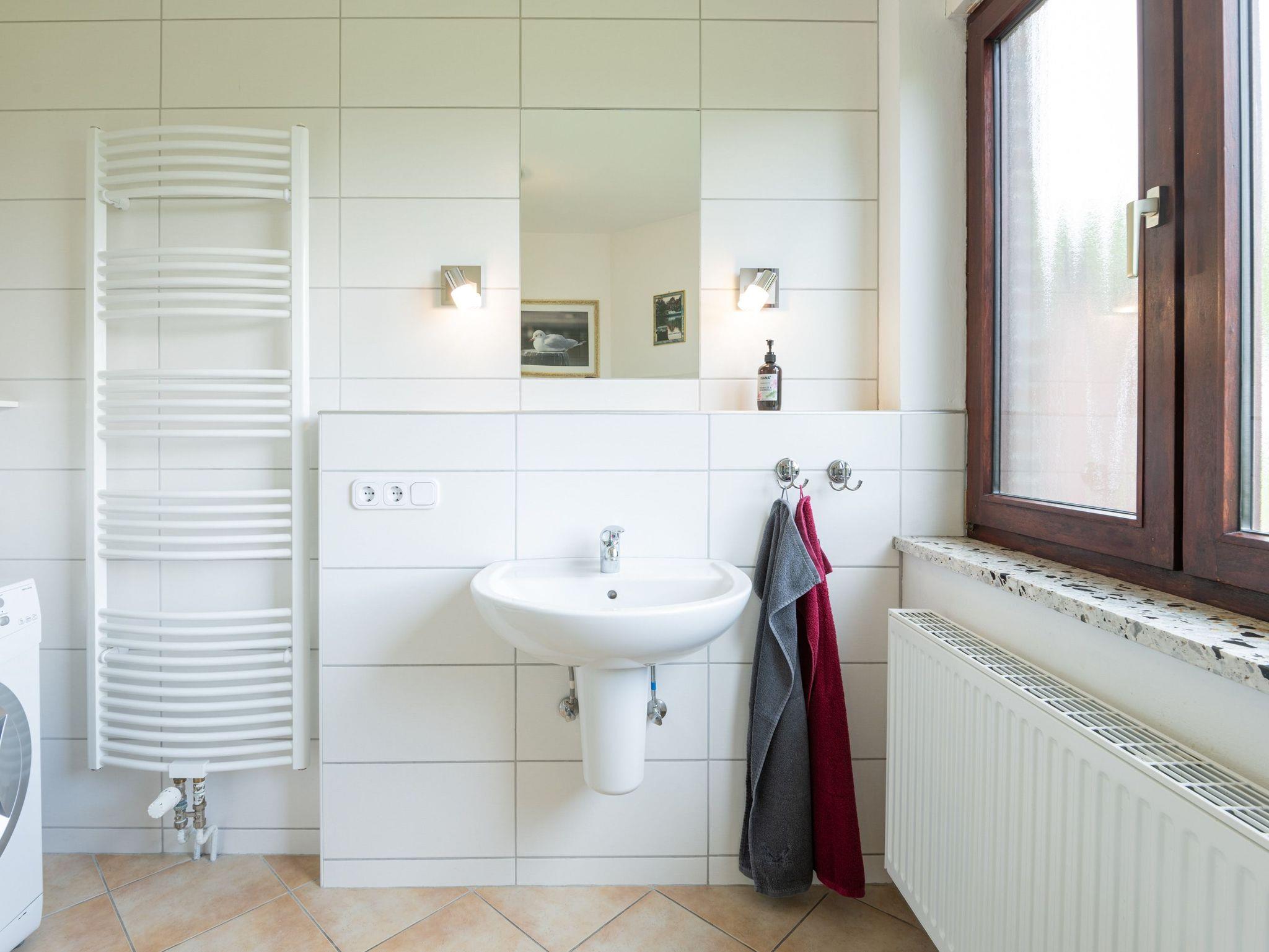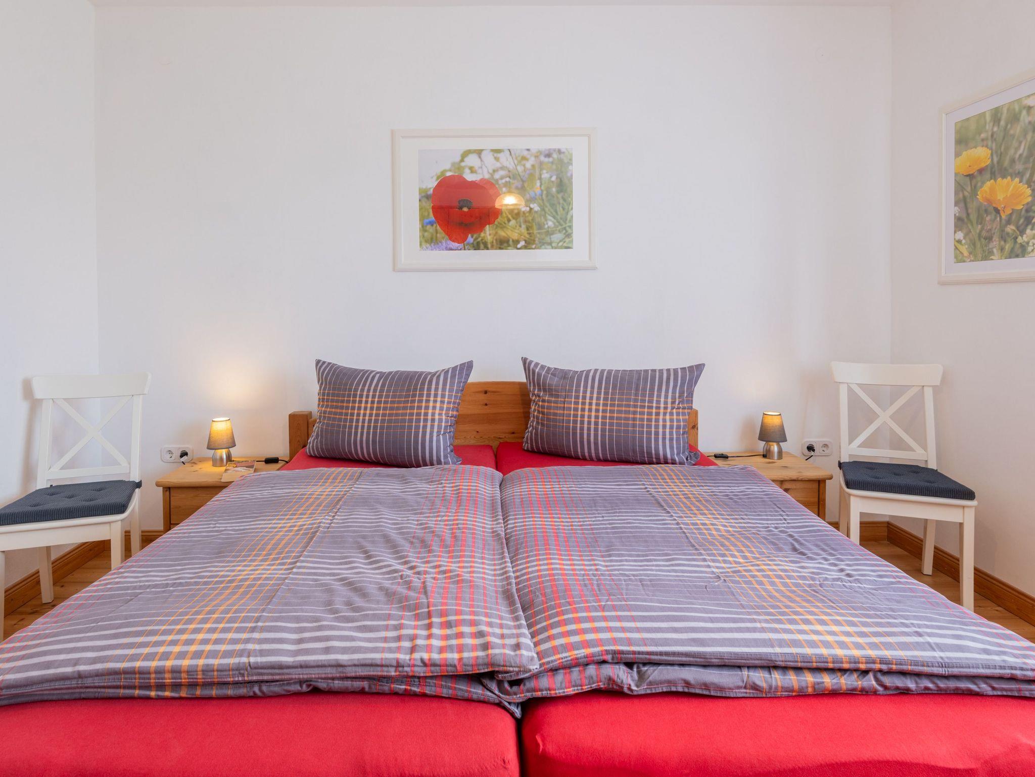 Zwei Schlafzimmer mit Doppelbetten jeweils mit den Maßen 1,80 x 2,00 m und ein Kinderbett (für max. 3 Jahre) und das angrenzende Badezimmer mit Waschmaschine stehen den Gästen kostenfrei zur Verfügung.