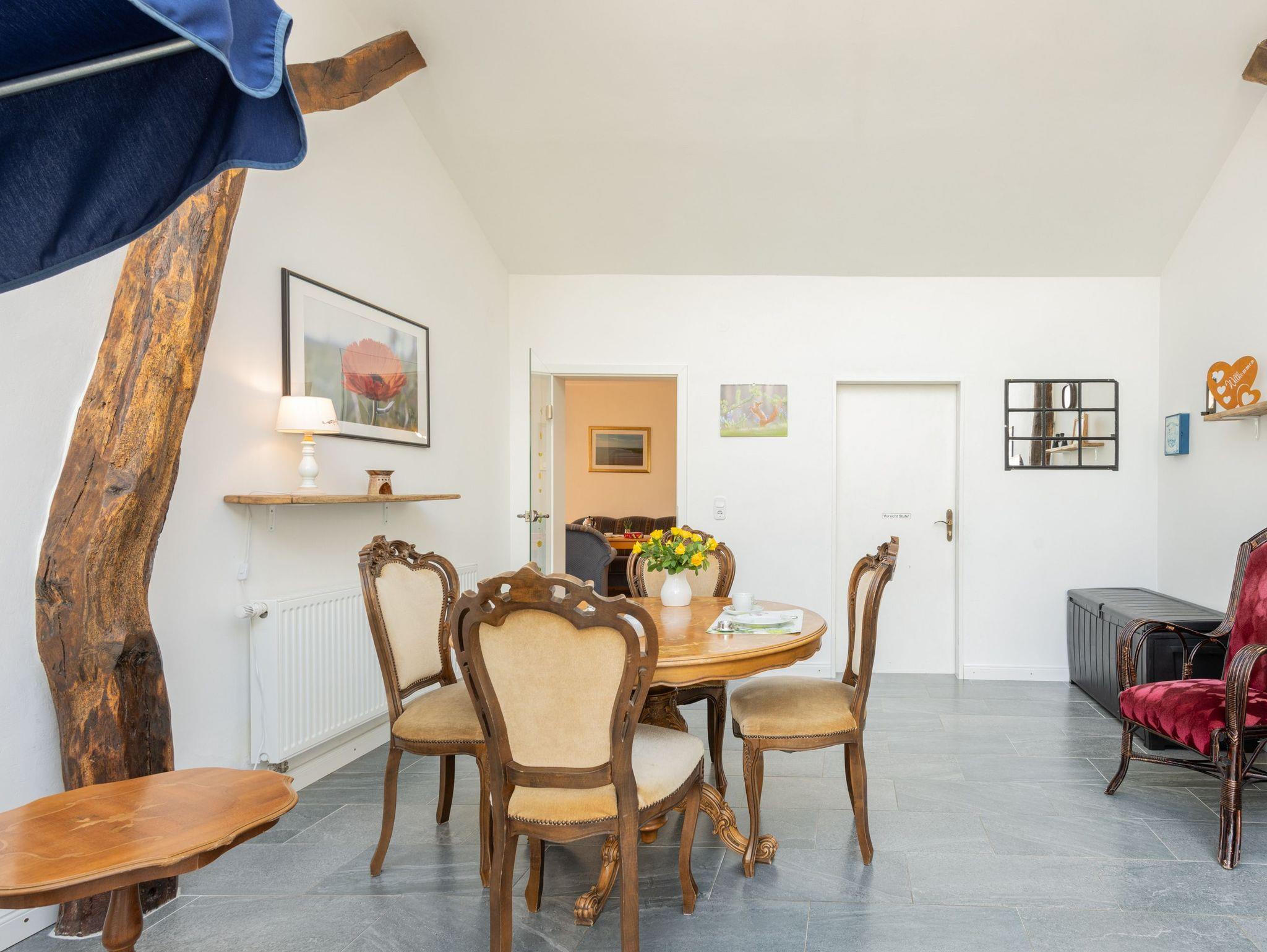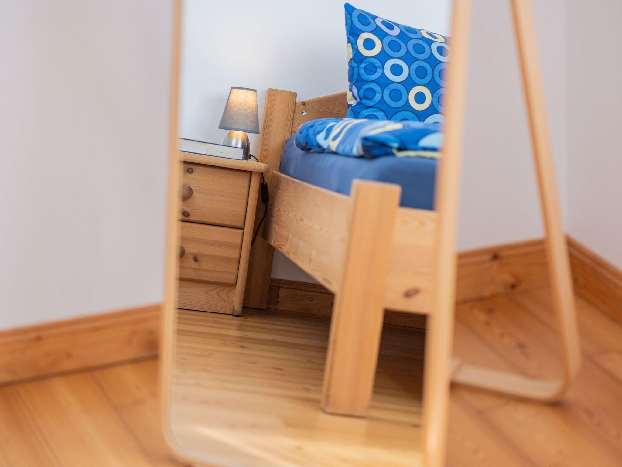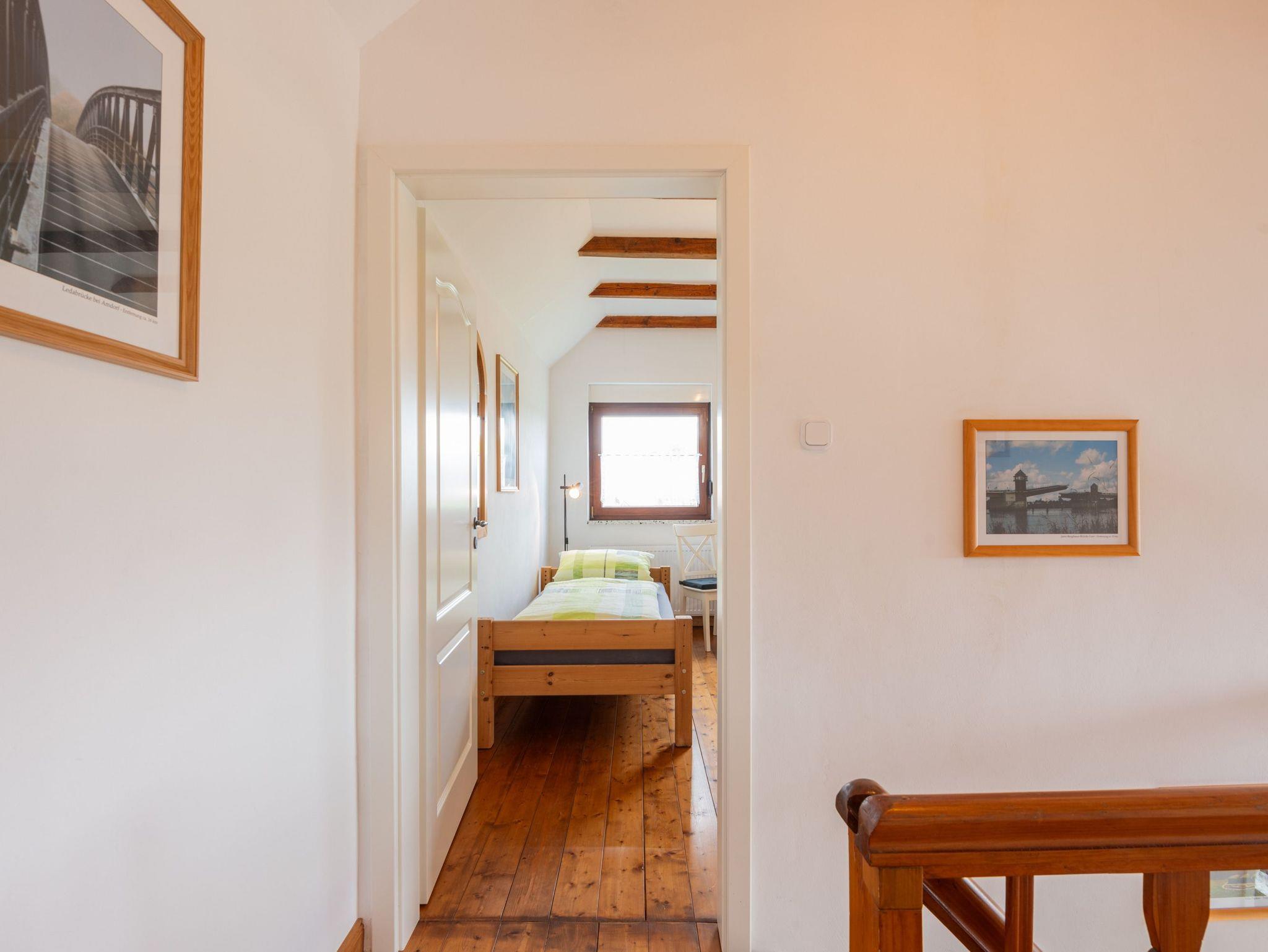 Oben befindet sich ein weiteres Schlafzimmer mit zwei Einzelbetten (0,90 x 2,00 m). Die Dachgaube, die mit dem Treppenhaus verbunden ist, bietet ein ruhiges Plätzchen um beispielsweise ein Buch zu lesen.