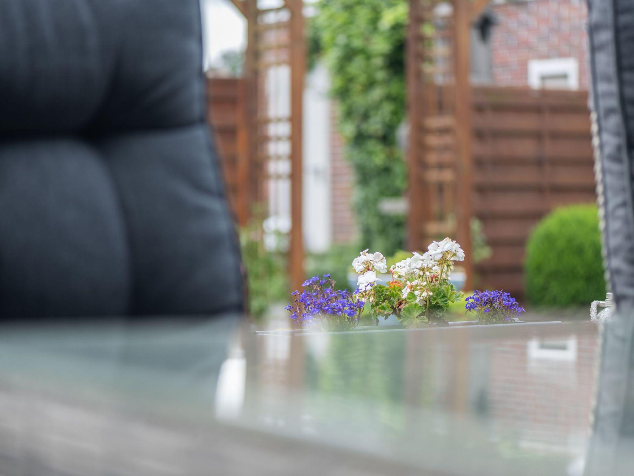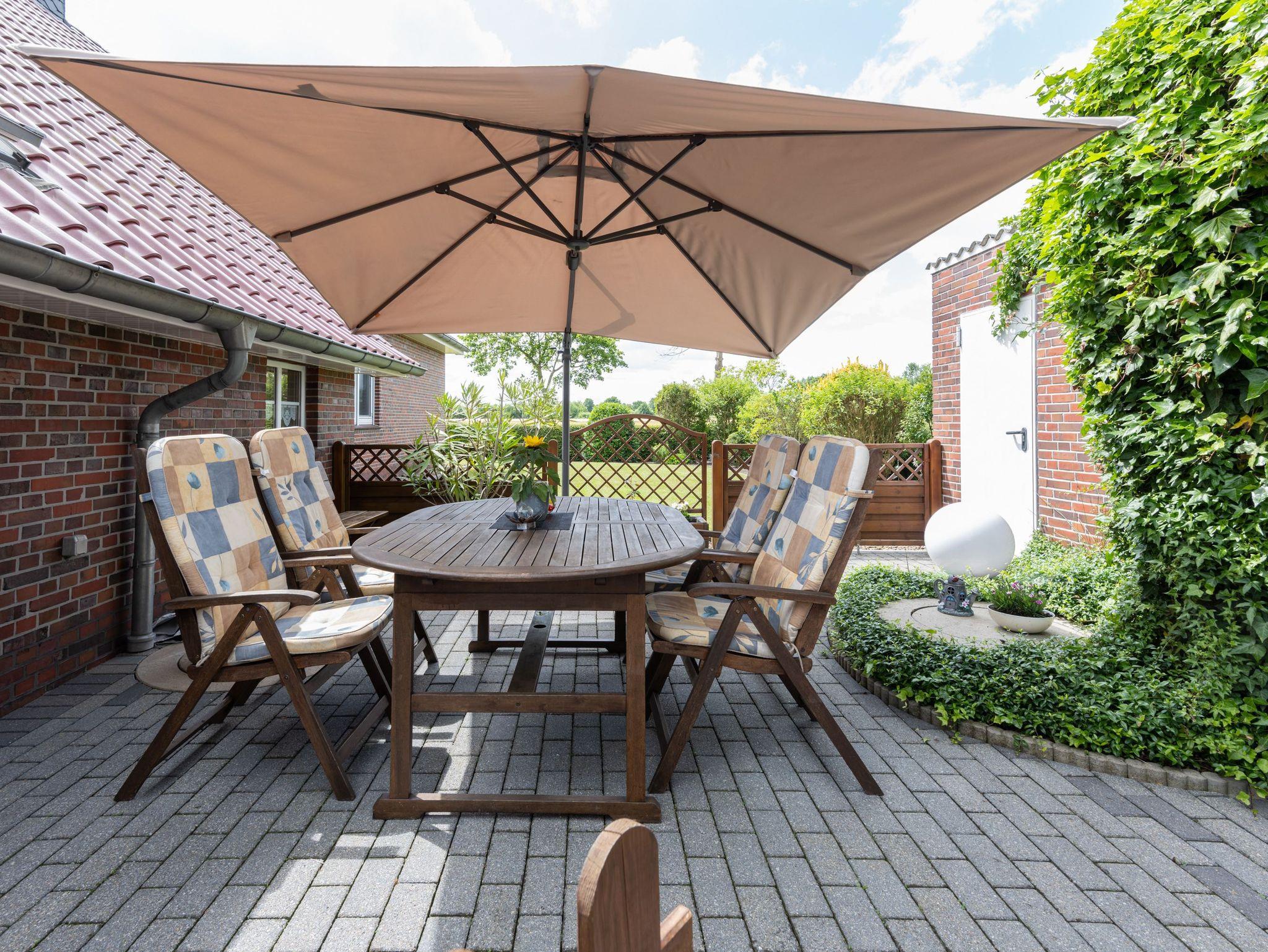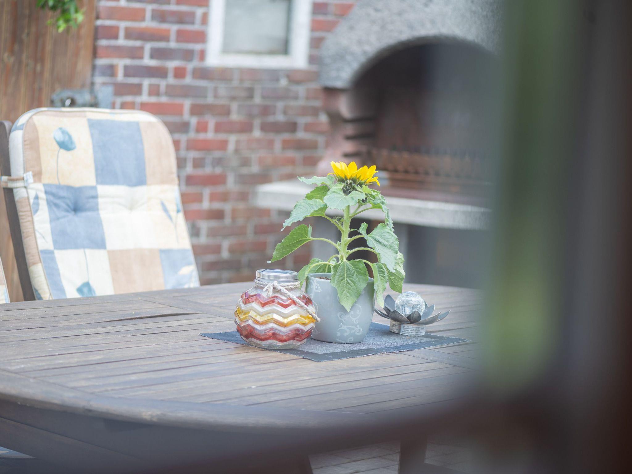 Im Außenbereich befindet sich eine Terrasse mit Gartenmöbel und Grillmöglichkeit.