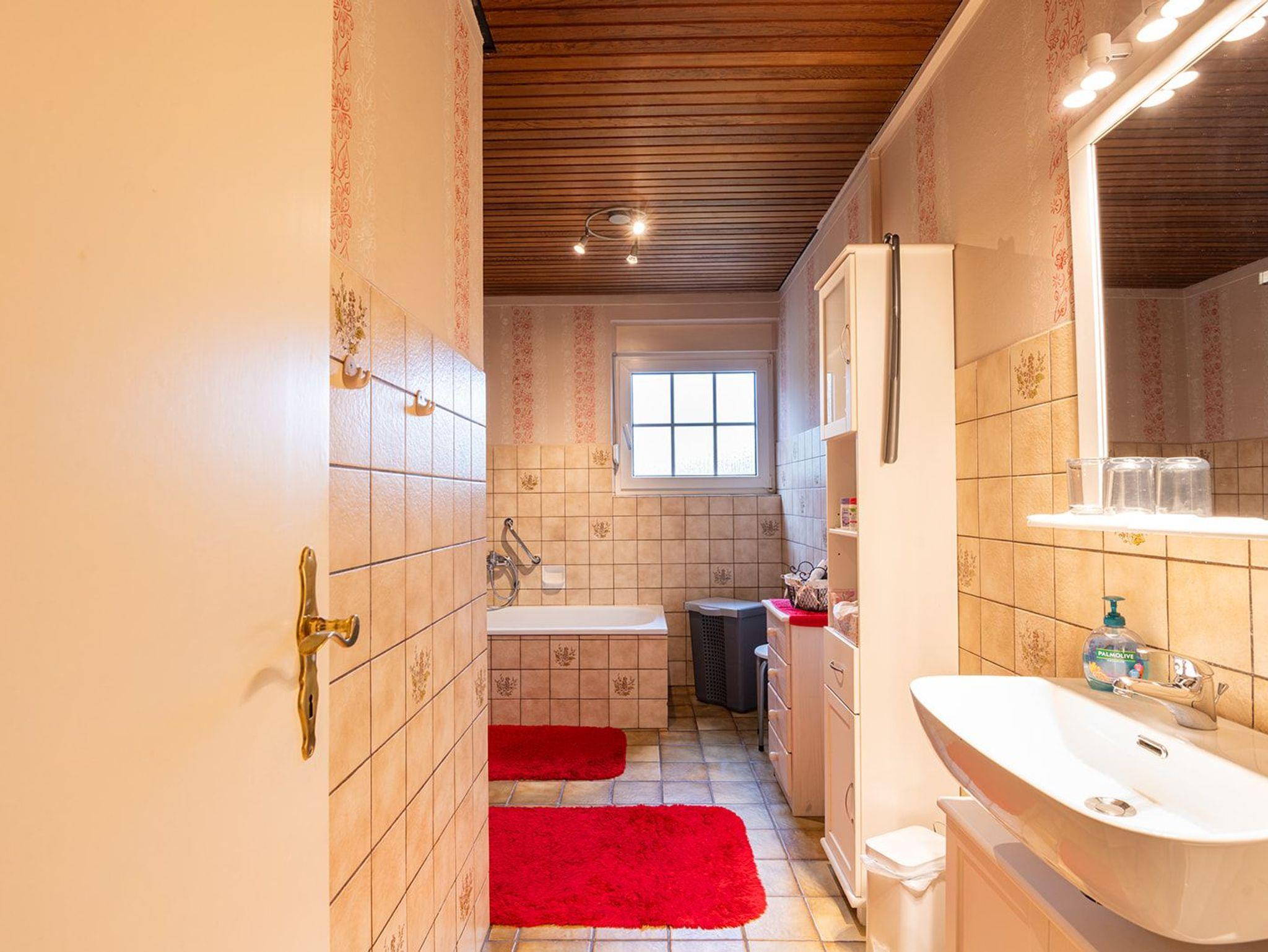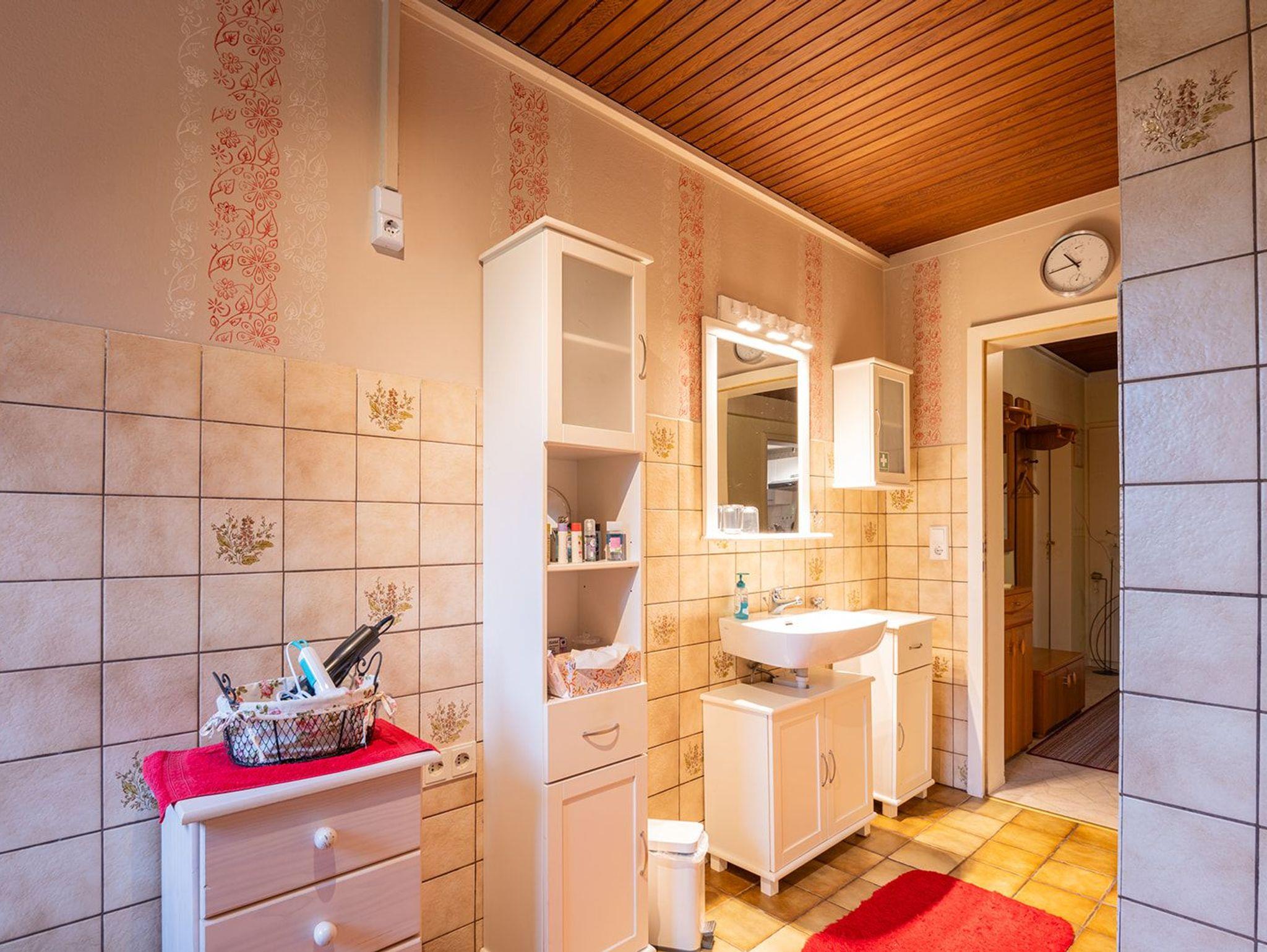 Im Badezimmer ist eine Badewanne bzw. Dusche (90 X 90 cm). Haartrockner und Lockenstab werden ebenfalls bereitgestellt.