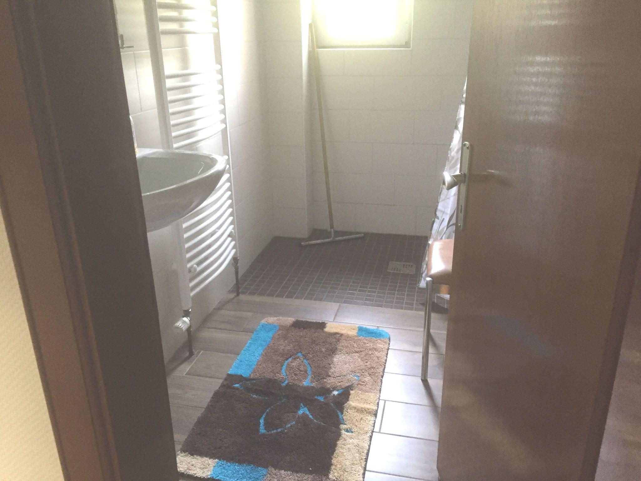 Das neu renovierte Badezimmer hat eine ebenerdige Dusche. Es ist eine separate Toilette vorhanden.