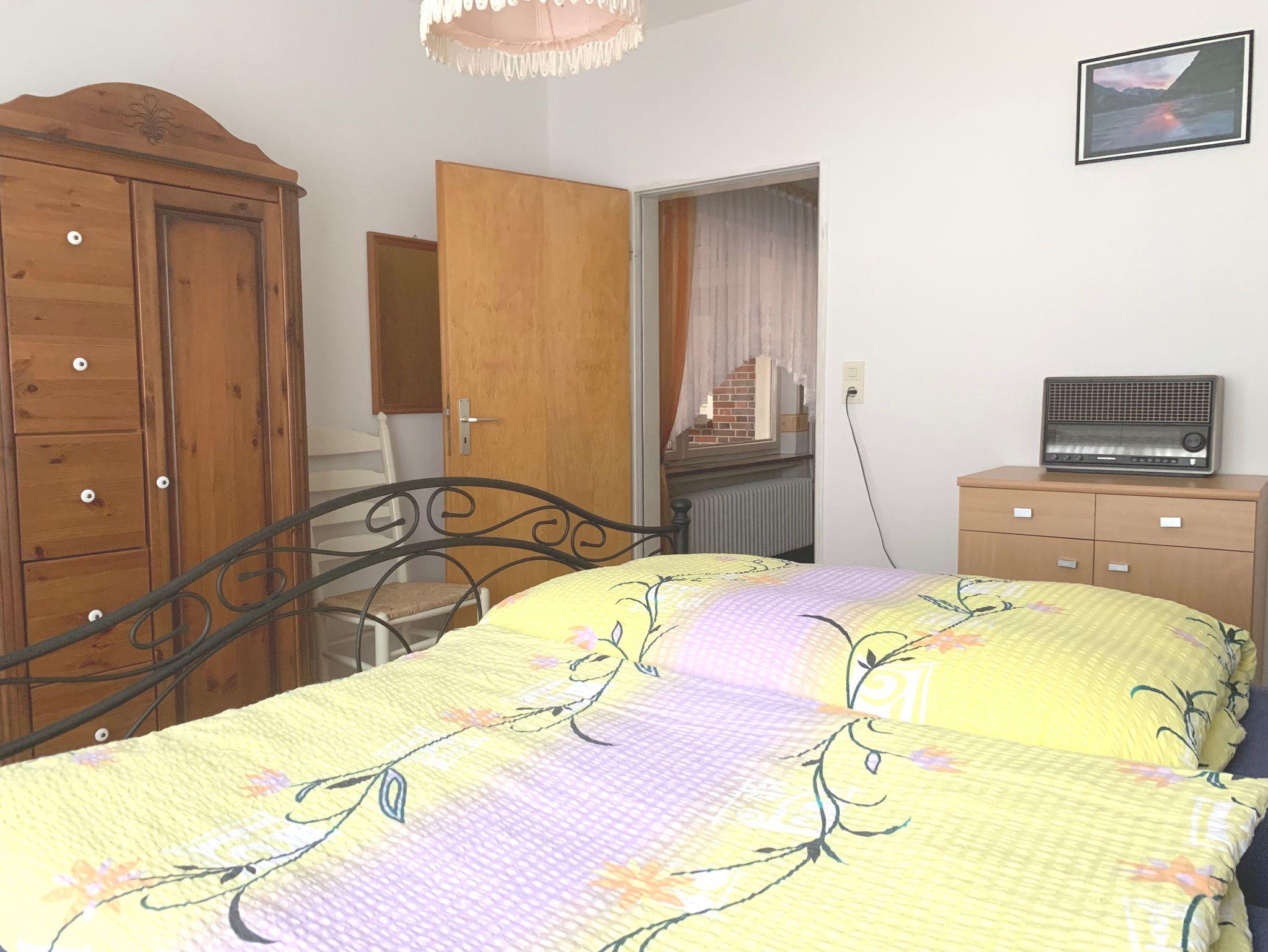 In jedem Schlafzimmer befinden sich Kleiderschränke. In einem Zimmer ist ein Doppelbett (1,80 x 2,00 m) und in dem anderen Zimmer sind zwei Einzelbetten (0,90 x 2,00 m) vorhanden. Diese können auch getrennt gestellt werden. Ebenfalls kann auf Wunsch ein Gästebett oder ein Kinderbett aufgebaut werden.