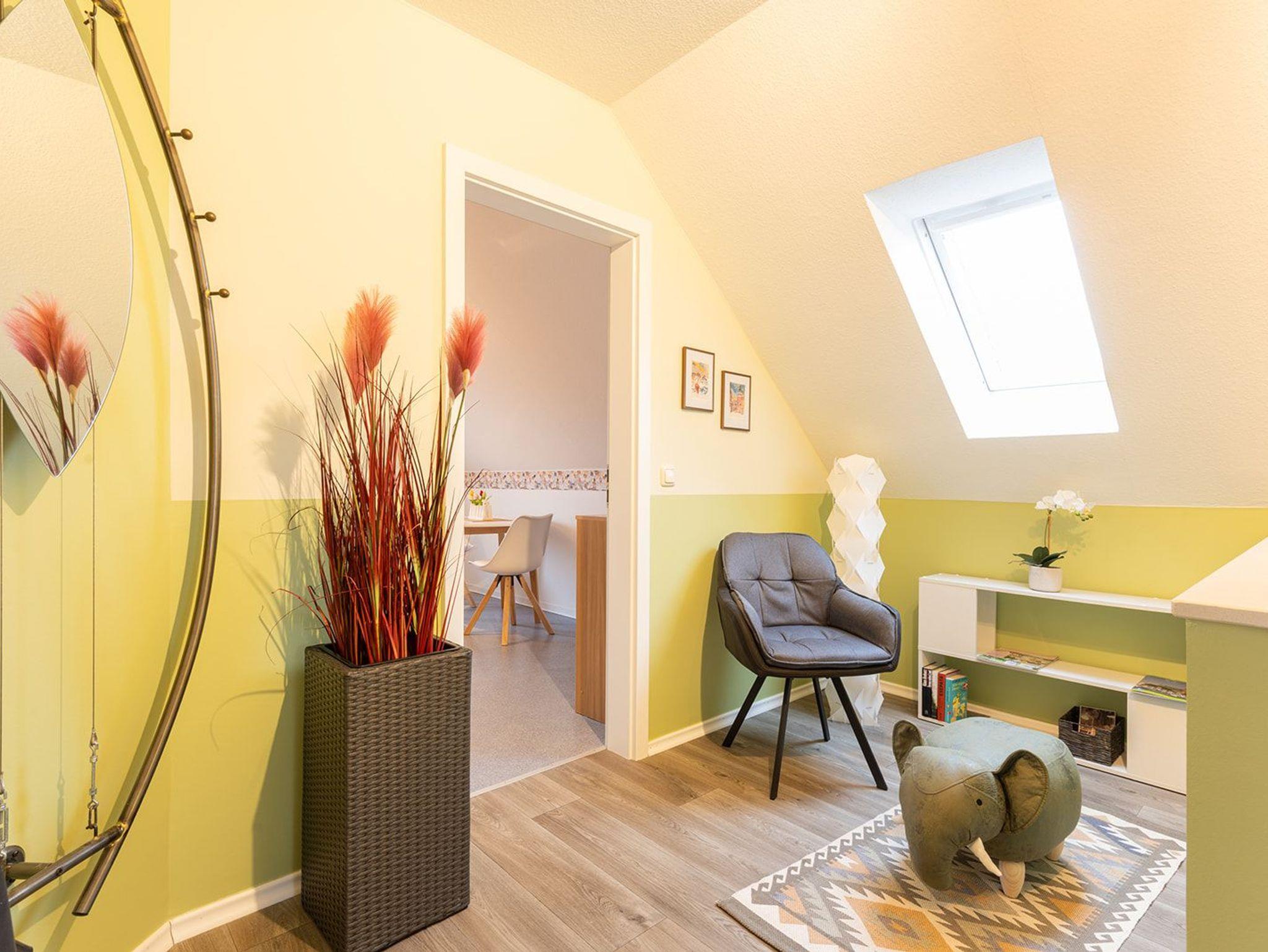 Nur 600 Meter bis ins Zentrum und 700 Meter bis zum Wald am Ende einer ruhigen Sackgasse liegt unsere liebevoll gestaltete Ferienwohnung Auszeit mit Waldgeflüster (OG).