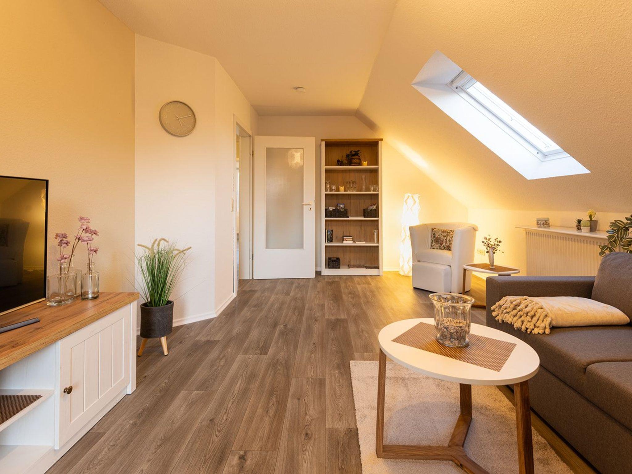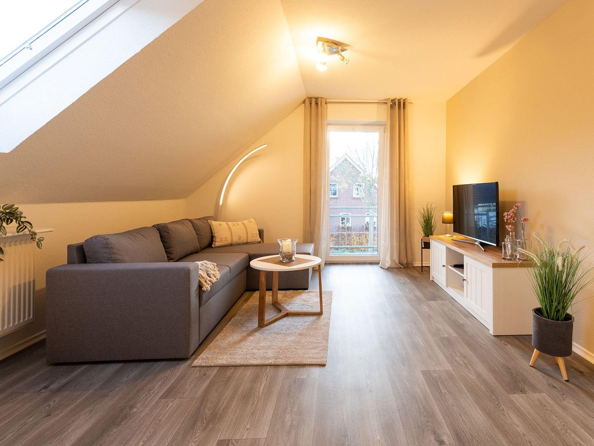 Die hübsche, geschmackvoll eingerichtete Nichtraucher-Ferienwohnung befindet sich im Obergeschoss eines Einfamilienhauses in Hesel.