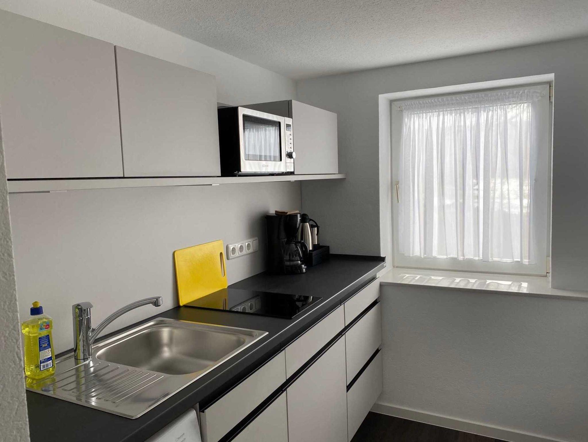 • 1 Komfortables Apartment mit seperatem Schlafbereich, TV, Schreibtisch/Dusche, WC, Handtücher, Fön,/voll ausgestattete Küche mit kleiner Waschmaschine, Wohnbereich, Schlaf Couch, TV