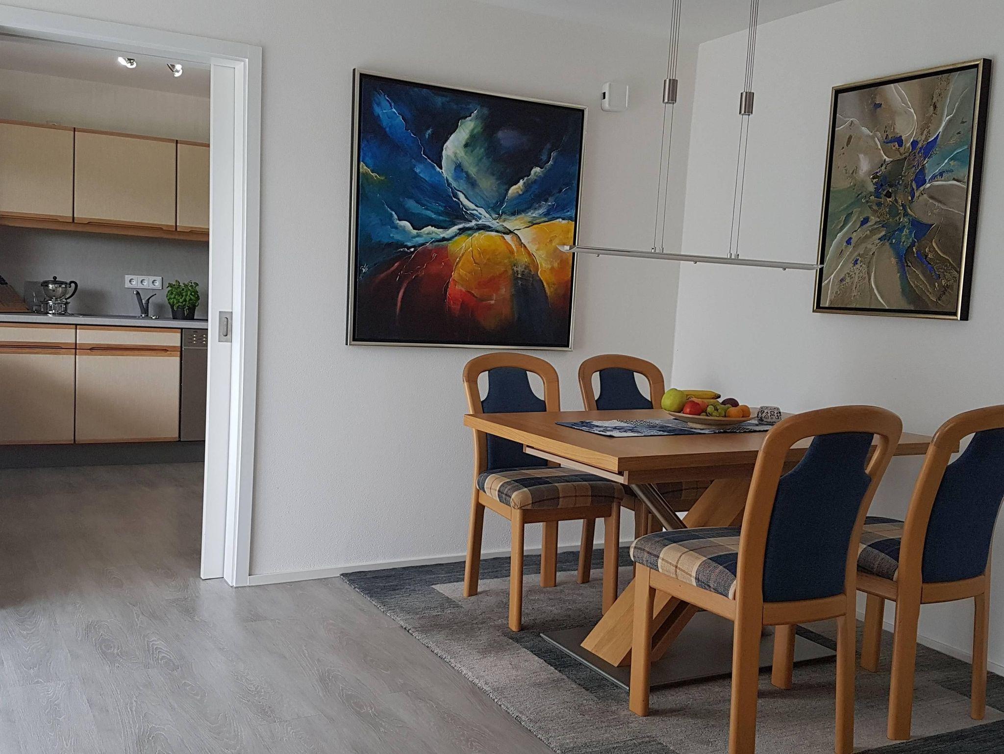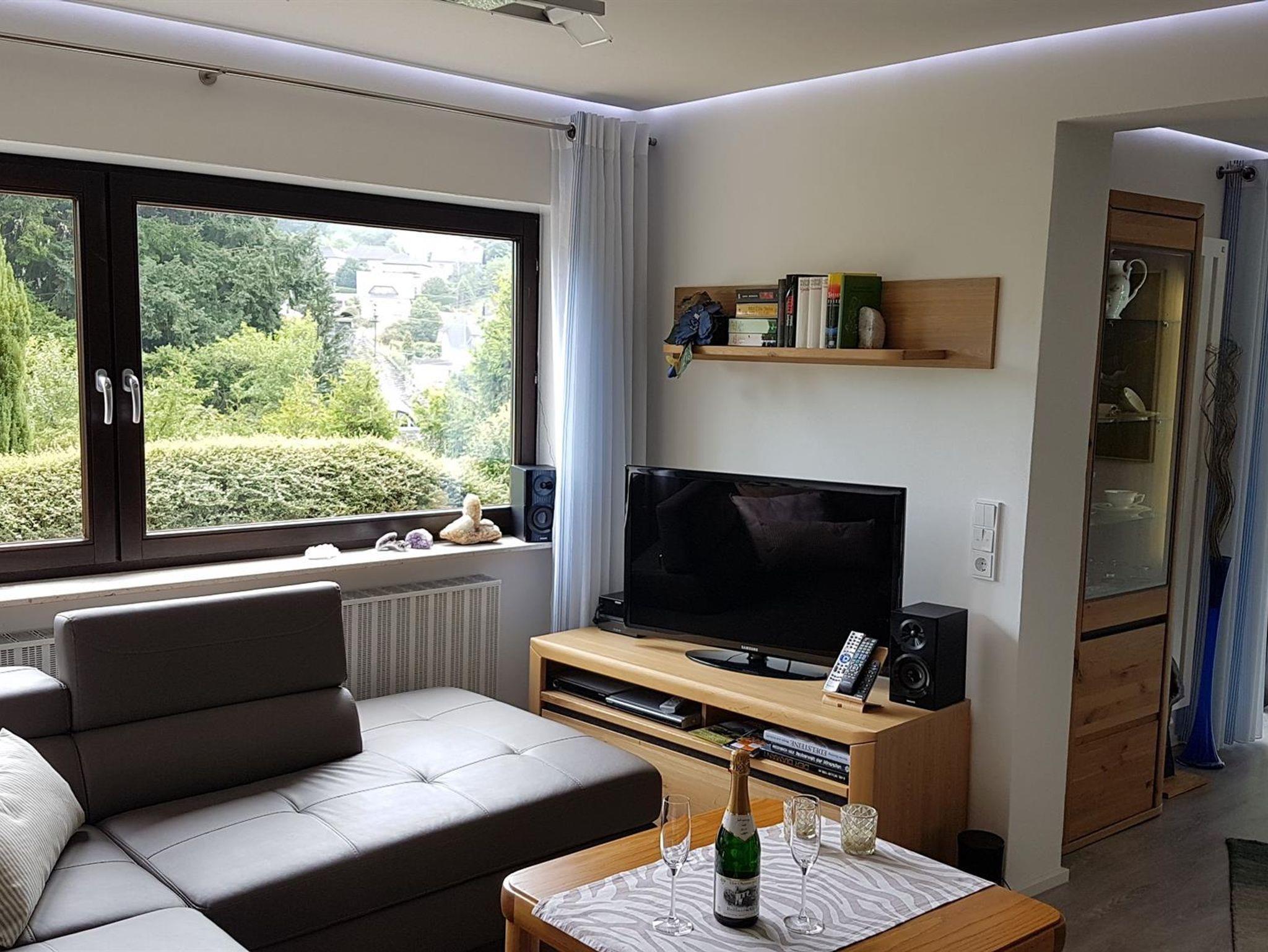 Die großzügige Ferienwohnung ist mit modernem Komfort liebevoll und komplett ausgestattet. Sie erwartet ein topmodernes Bad, eine voll ausgestattete Küche, ein helles gemütliches Wohn-Esszimmer, ein freundliches Schlafzimmer, eine überdachte Terrasse mit offenem Grillkamin und ein weitläufiger Garten in Hanglage.