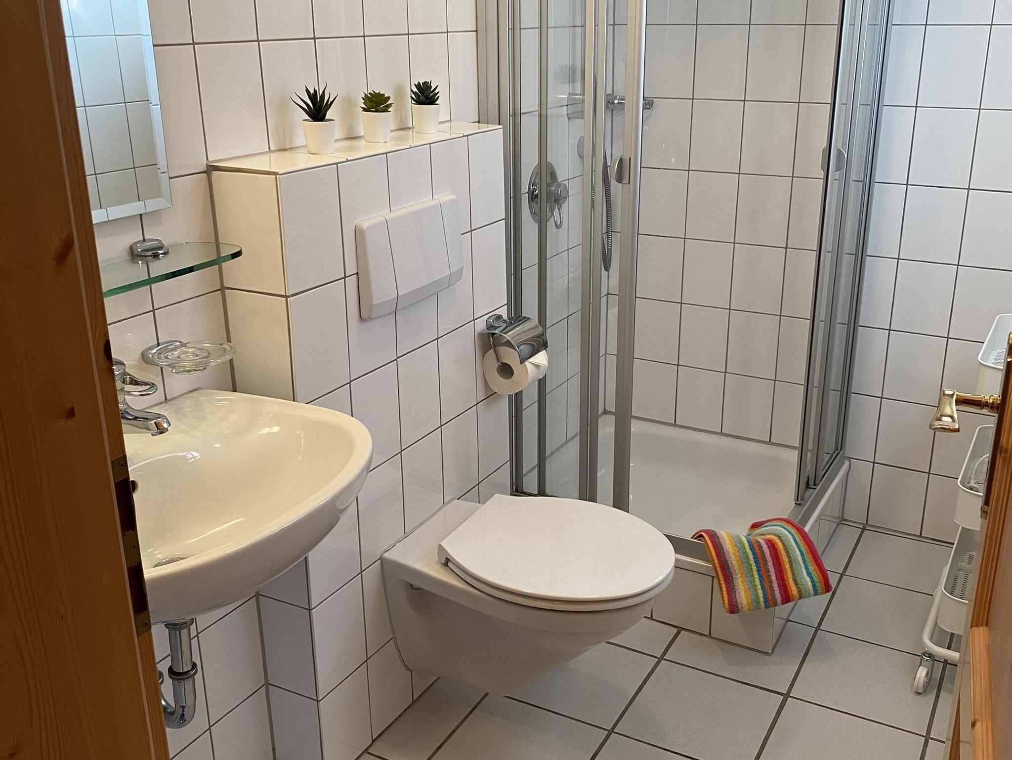 Tageslichtbad: mit Dusche und WC, (Handtücher inklusive), Fön.