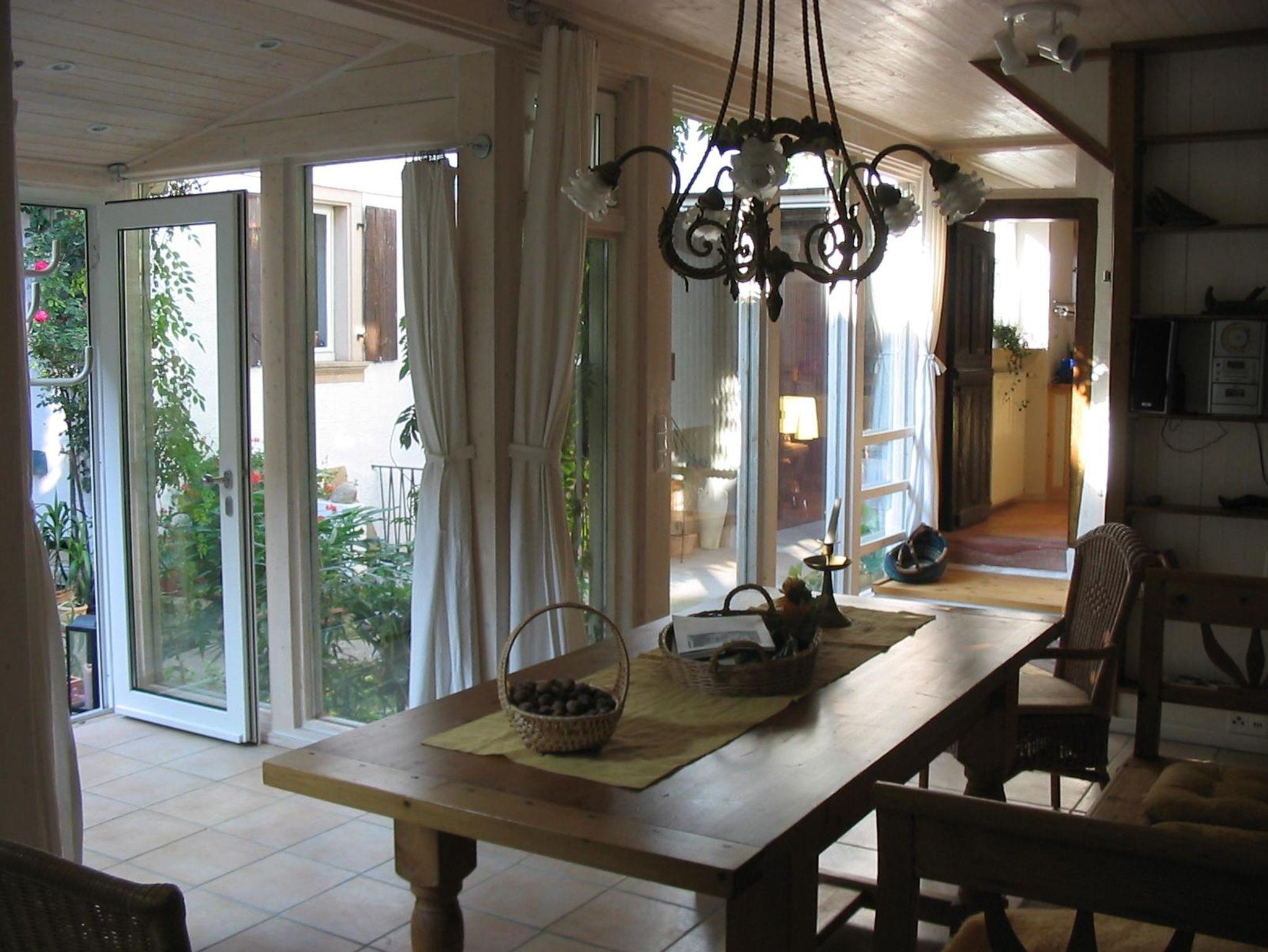 Außergewöhnlich orginelle Ferienwohnung mit Wintergarten, im mediterranen Stil eines ehemaligen Winzerhauses. Idyllischer ruhiger Innenhof. Auf der Südseite des Anwesens befindet sich eine kleine gemütliche Gartenanlage, die Sie zum Ausruhen und Grillen einlädt.