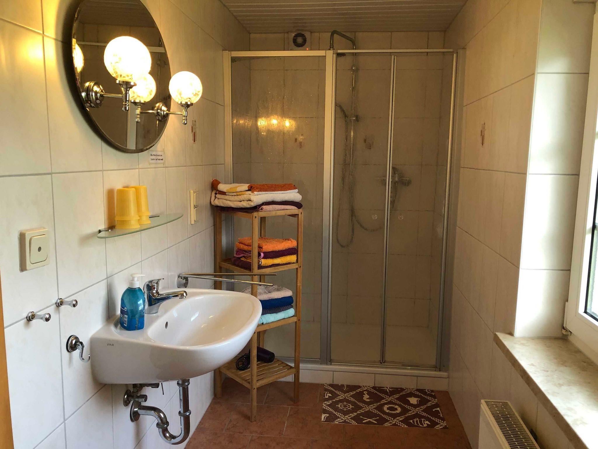 60 m² große Ferienhaus über 2 Etagen mit Wohnzimmer inkl. Sat-TV, vollausgestattete Küchenzeile mit 4 Herdplaten, Backofen, Wasserkocher, Kaffeemaschine, 1 Badezimmer mit Dusche/WC und einem schönen Ausblick in den Garten.