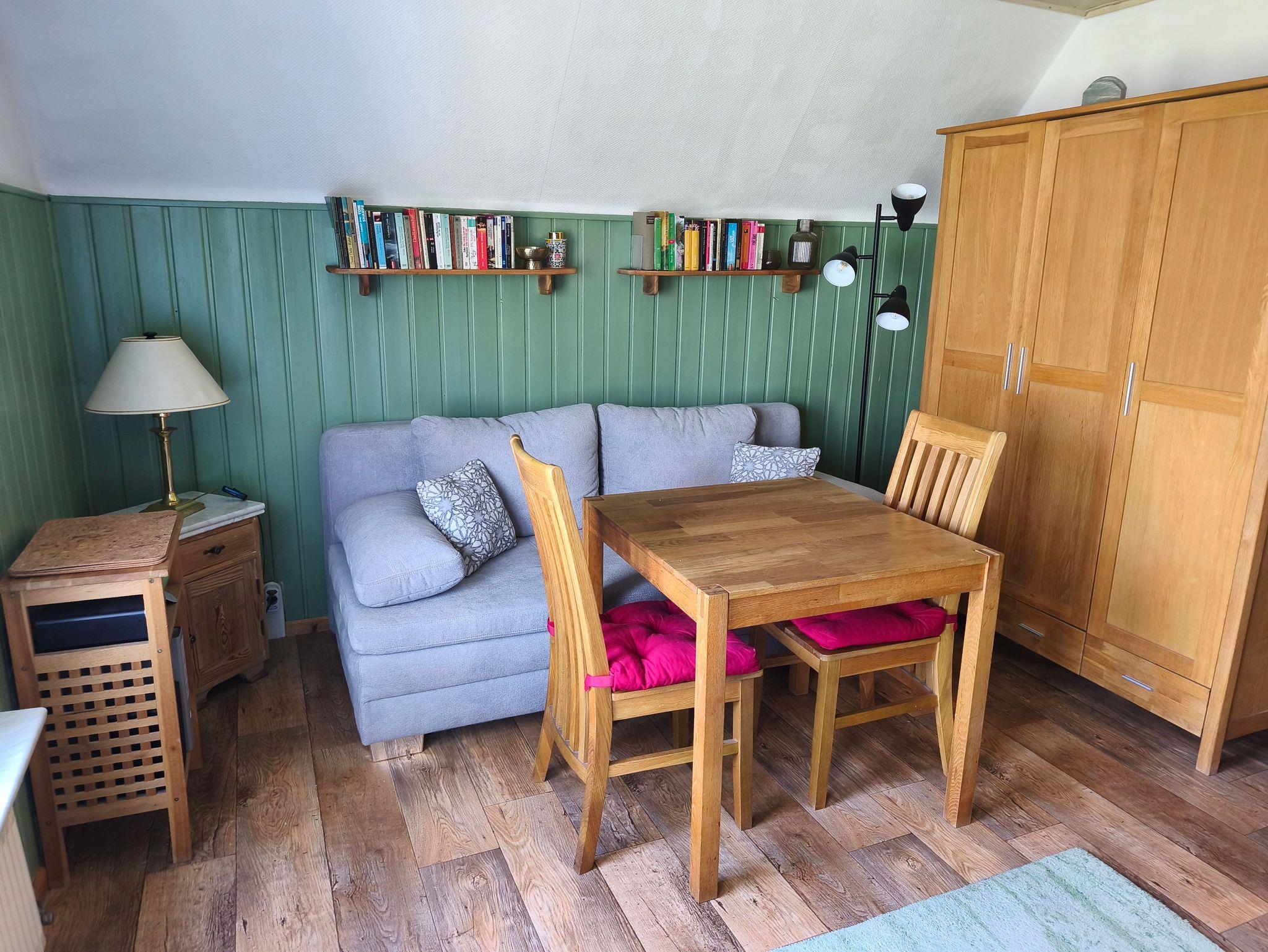 Die Ferienwohnung verfügt über einen kombinierten Wohn-Schlafbereich, eine Mini-Küche und separate Dusche / WC.