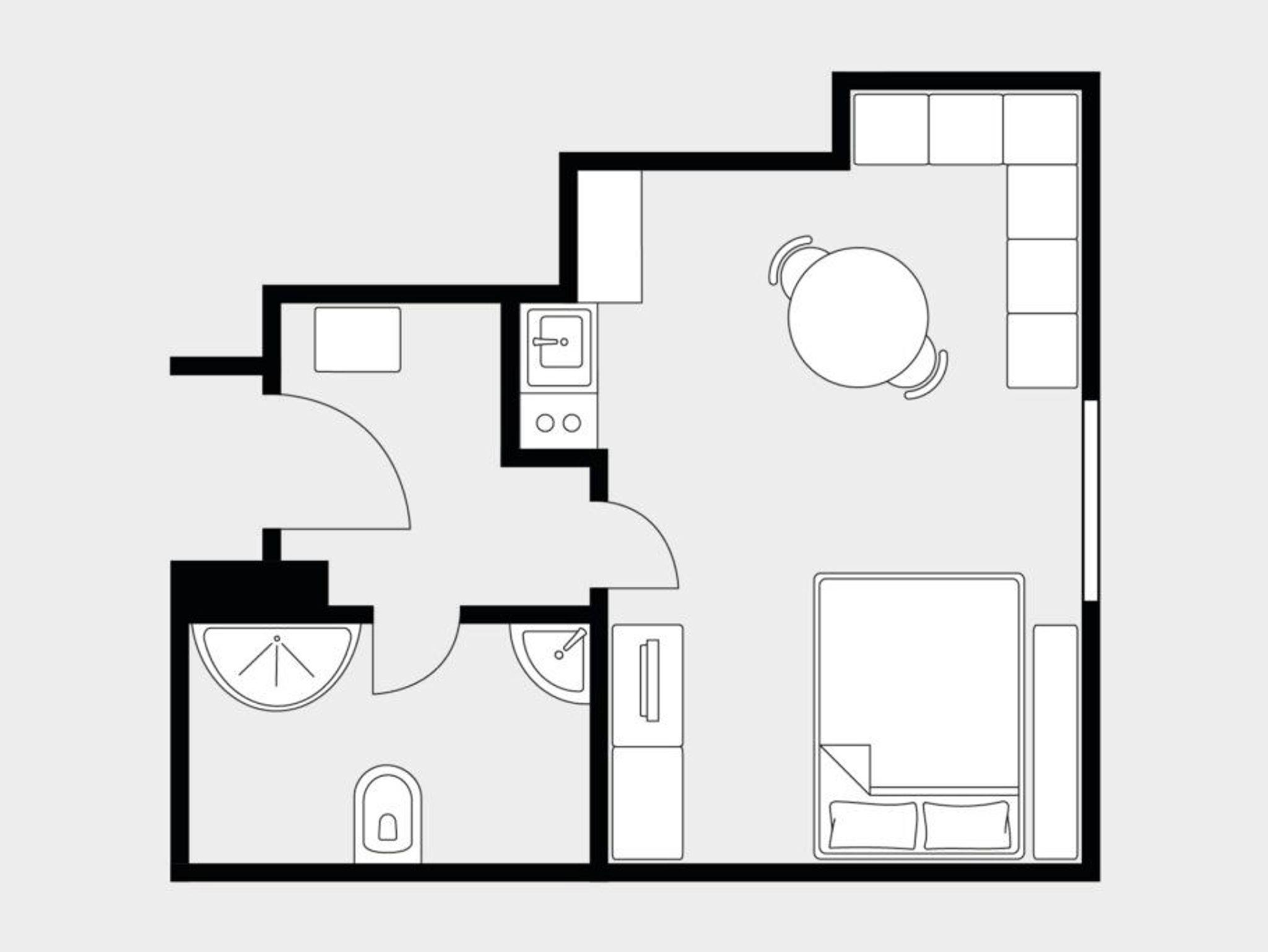 Eine kompakte, integrierte Küchenzeile ermöglicht die Zubereitung kleiner Mahlzeiten. Das Bad mit Dusche und WC liegt ebenfalls unter der Dachschräge. Zur weiteren Ausstattung gehören ein Flachbild-TV und ein Telefon. Ein Balkon ist nicht vorhanden ? dafür punktet das Apartment mit viel Charme auf kleiner Fläche.